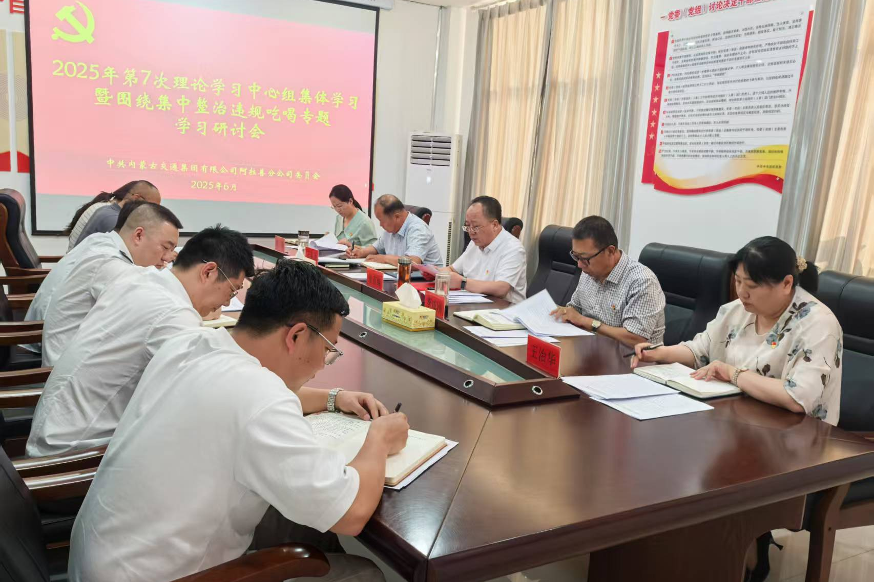 6月10日下午,內(nèi)蒙古交通集團(tuán)有限公司阿拉善分公司黨委召開2025年第7次理論學(xué)習(xí)中心組集體學(xué)習(xí)暨圍繞集中整治違規(guī)吃喝專題學(xué)習(xí)研討會(huì)。分公司領(lǐng)導(dǎo)班子、機(jī)關(guān)各部室負(fù)責(zé)人參加會(huì)議。