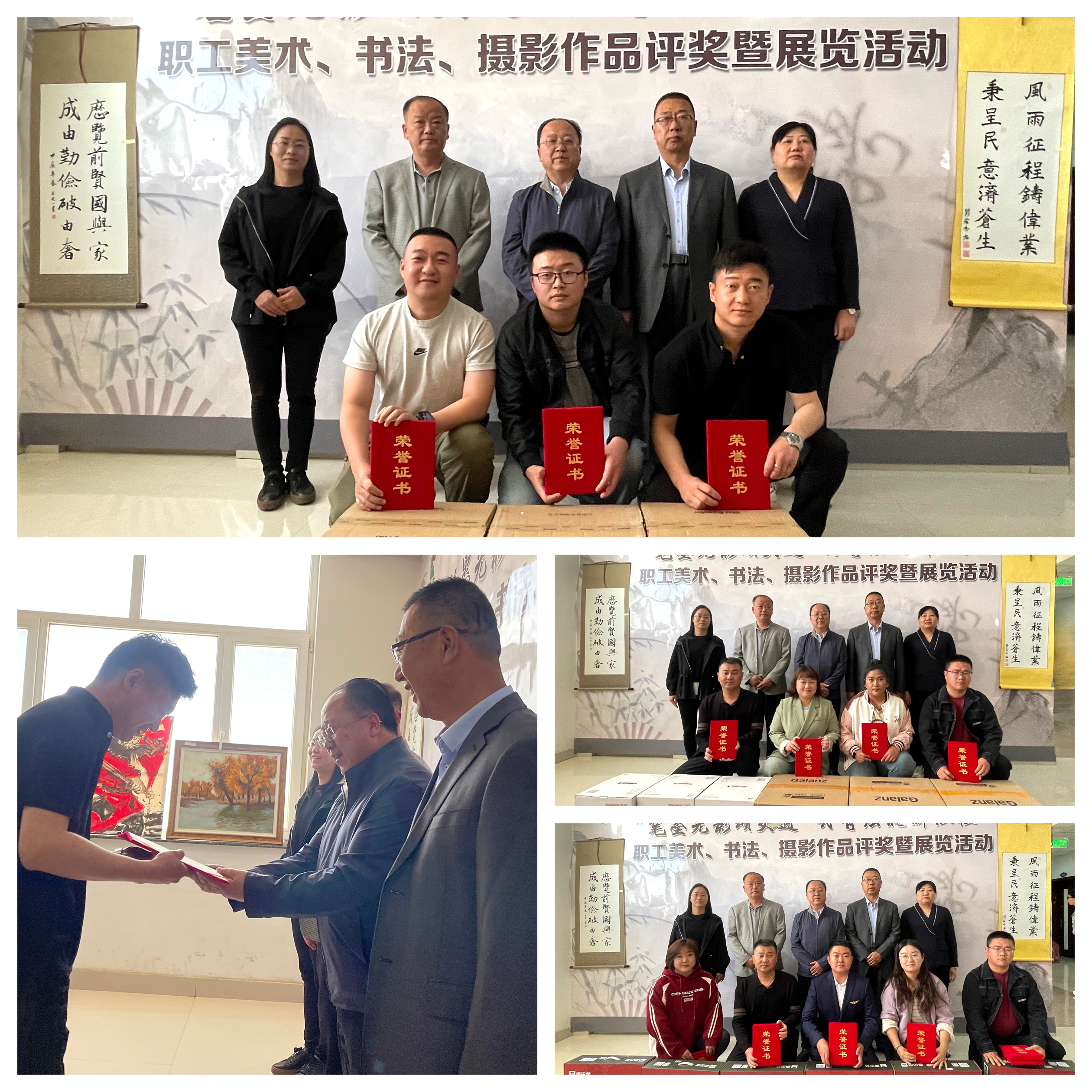本次展覽,由阿拉善盟相關(guān)協(xié)會(huì)專家與分公司領(lǐng)導(dǎo)組成專業(yè)評(píng)審委員會(huì),秉持公平、公正、公開的原則,對(duì)所有作品進(jìn)行嚴(yán)格篩選。最終,從三個(gè)類別中評(píng)選出25個(gè)獲獎(jiǎng)作品。頒獎(jiǎng)環(huán)節(jié),領(lǐng)導(dǎo)們?yōu)楂@獎(jiǎng)代表及榮獲優(yōu)秀組織獎(jiǎng)的單位頒發(fā)榮譽(yù)證書和獎(jiǎng)牌。其中,巴潤別立通行費(fèi)收費(fèi)所憑借出色的組織工作,榮獲本次活動(dòng)優(yōu)秀組織獎(jiǎng)。
