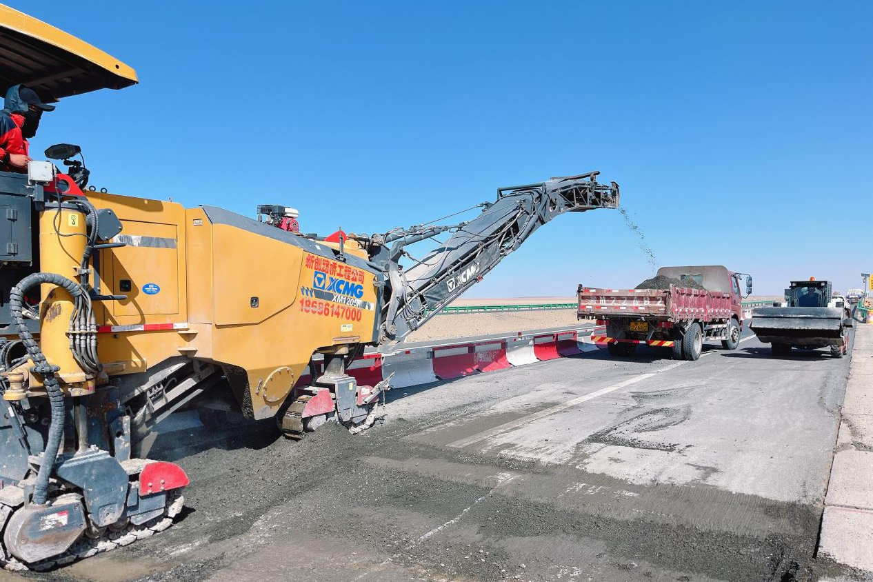 在額濟納旗沙漠戈壁鹽漬土區(qū)域的拱脹路段施工作業(yè)現(xiàn)場,張有維詳細查看了道路病害情況,并與施工單位就病害成因和處置方案進行了現(xiàn)場溝通。他指出,該區(qū)域施工環(huán)境特殊,病害成因復雜,施工單位要結合區(qū)域特殊氣候和施工環(huán)境,深入分析病害成因,優(yōu)化治理方案,積極推進防治措施的落實,同時要加強施工過程中的動態(tài)監(jiān)測,及時發(fā)現(xiàn)和解決可能出現(xiàn)的問題,確保施工質量和安全。