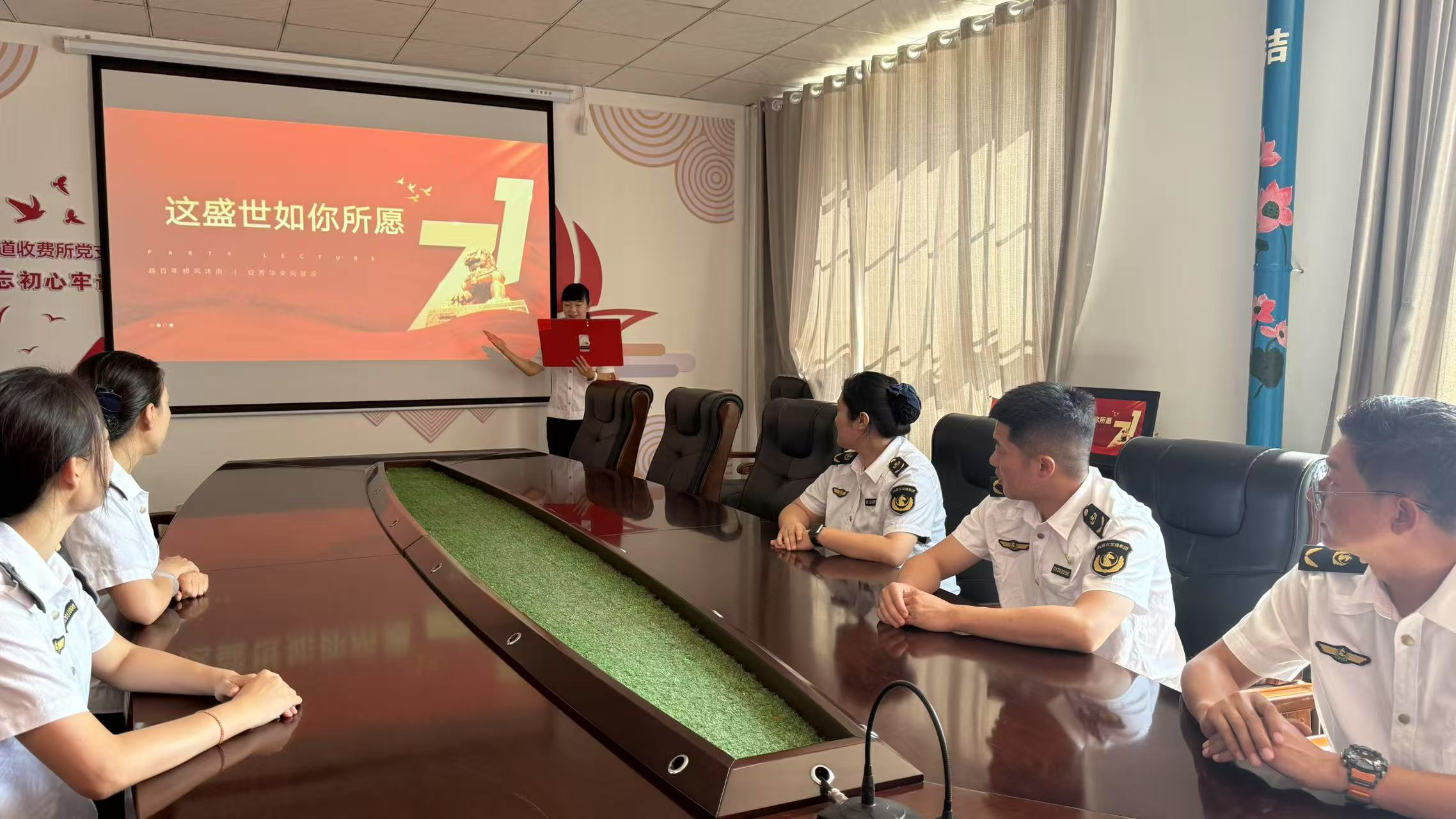 南寺匝道收費所黨支部組織職工們朗誦紅色經(jīng)典作品,用鏗鏘有力的語言和真摯飽滿的情感,將黨的百年征程生動呈現(xiàn),一篇篇蕩氣回腸的詩歌,展現(xiàn)了新時代交通人堅定不移聽黨話、跟黨走的信念與擔(dān)當(dāng)。