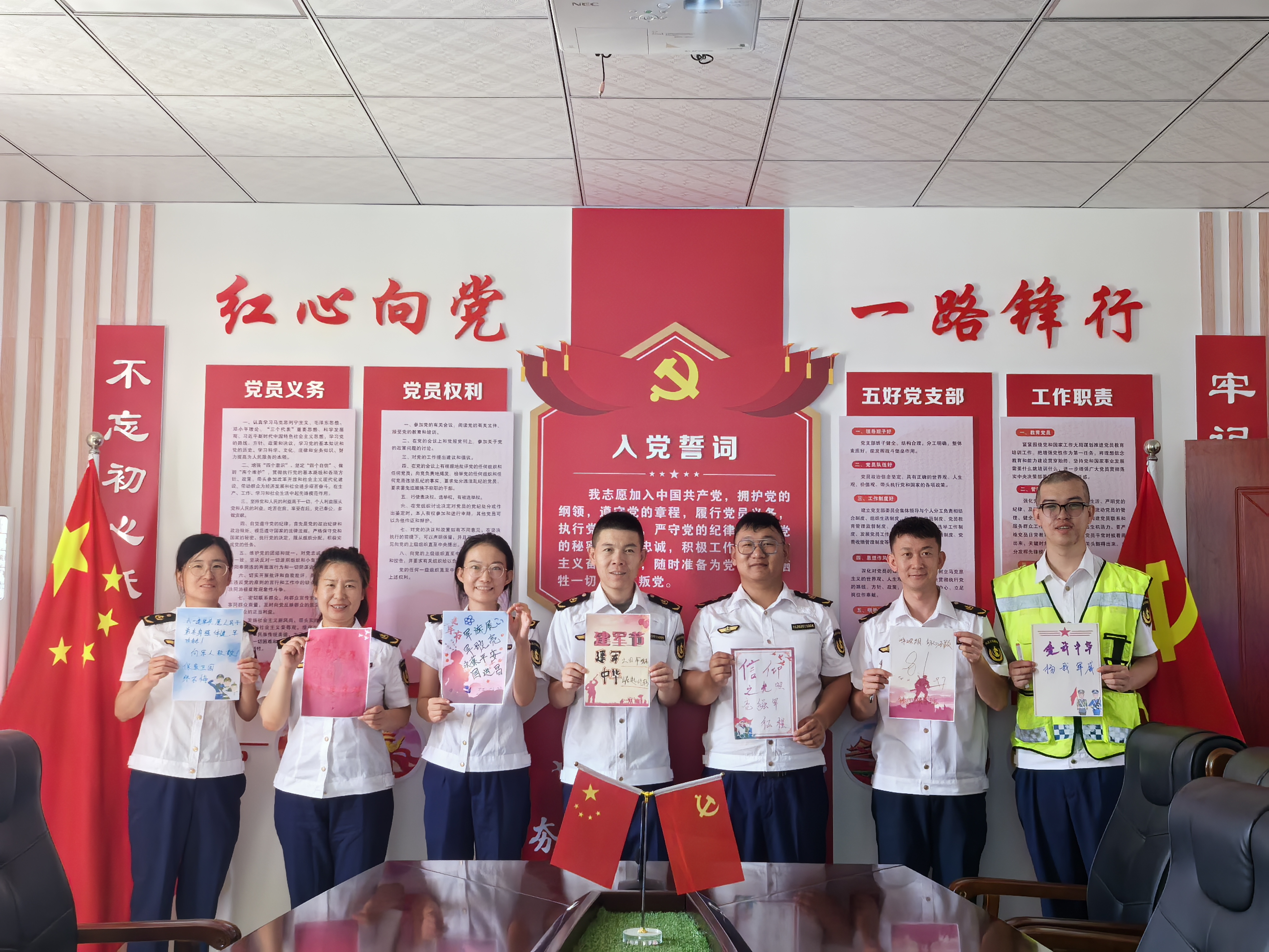 為慶祝中國人民解放軍建軍97周年,進(jìn)一步弘揚(yáng)擁軍優(yōu)屬、擁政愛民的優(yōu)良傳統(tǒng),加強(qiáng)軍政軍民團(tuán)結(jié),鑄牢中華民族共同體意識。7 月 30日,南寺匝道收費(fèi)所黨支部開展“黨建引領(lǐng)促雙擁 致敬“八一”建軍節(jié)”主題黨日活動(dòng),營造擁軍崇軍的良好節(jié)日氛圍。