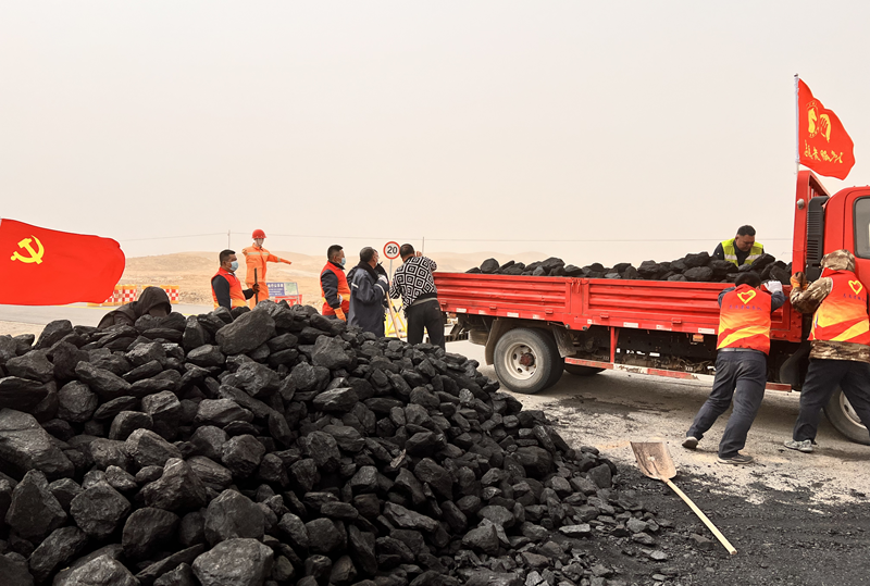 10月18日上午,黑鷹山收費(fèi)所黨支部書記鋼寶勒德接到牧民求助電話,了解到所站周邊牧民因家中缺乏勞動(dòng)力,無法搬運(yùn)政府發(fā)放的平價(jià)煤。黨支部書記立刻動(dòng)員,迅速組成一支裝煤小隊(duì),前往平價(jià)煤發(fā)放地提供援助,在沙塵中,職工們分工明確,有的揮舞鐵鍬,有的搬運(yùn)煤塊,他們的動(dòng)作快速而有序,經(jīng)過兩小時(shí)的共同努力,一車煤被成功裝滿。