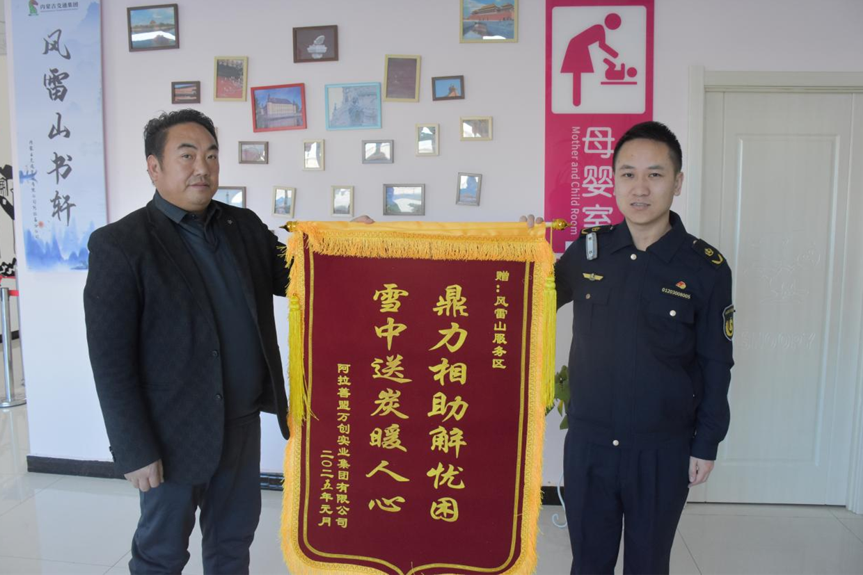 錦旗上“鼎力相助解憂困 雪中送炭暖人心”的話語(yǔ),是對(duì)風(fēng)雷山服務(wù)區(qū)溫暖春運(yùn)回家路,情系司乘的最好見(jiàn)證。一路相伴,溫暖滿途。春運(yùn)期間,阿拉善分公司類(lèi)似的暖心故事還有很多。這些故事,如同冬日里的暖陽(yáng),照亮了春運(yùn)歸途。