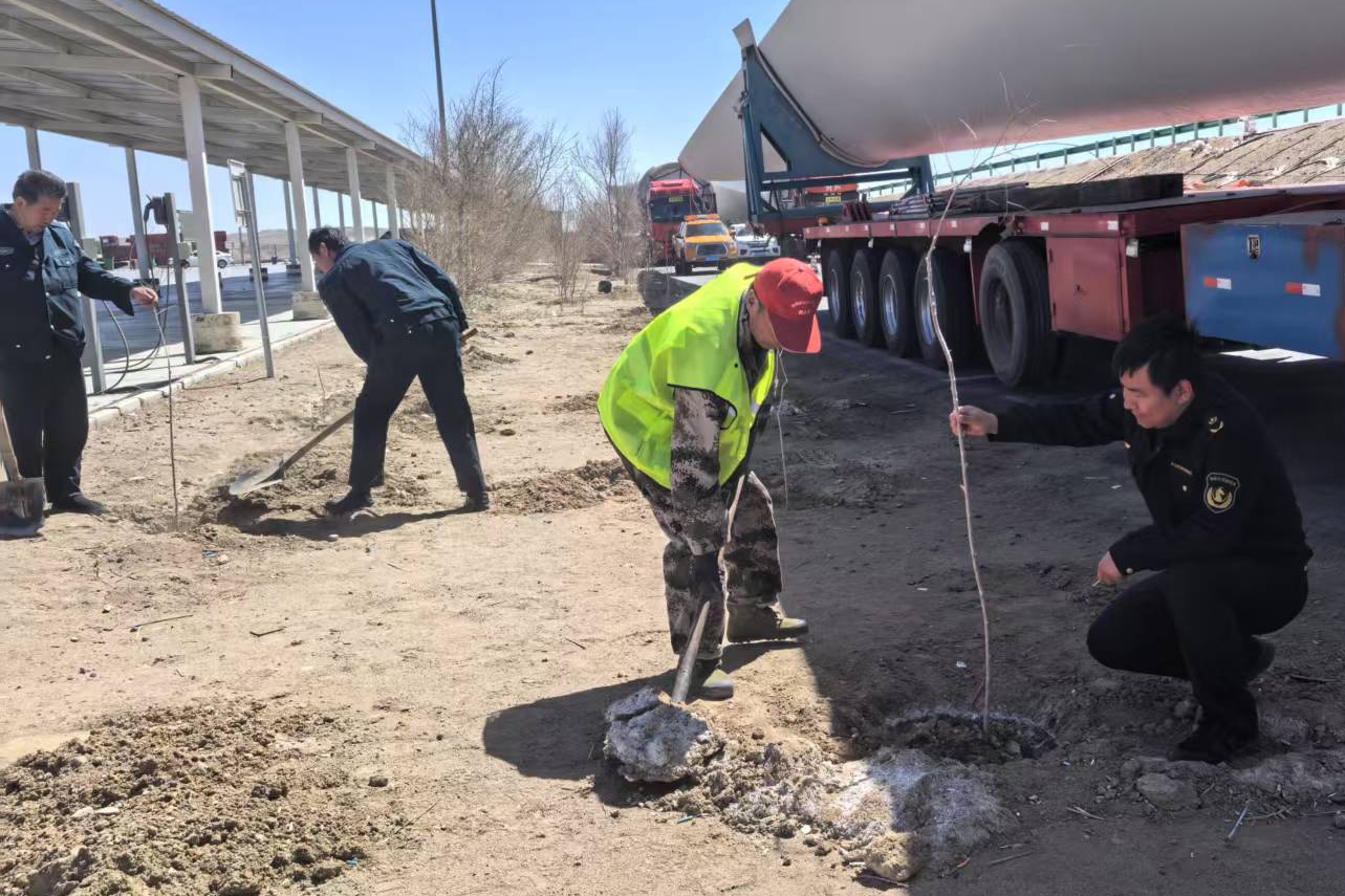 位于內蒙古最北端的黑鷹山服務區(qū),常年風沙大且干旱少雨,自然條件十分惡劣。而胡楊樹素有“沙漠英雄樹”之稱,憑借耐旱抗風沙的特性,成為能在黑鷹山服務區(qū)極端環(huán)境中頑強生長的植物。近日,黑鷹山服務區(qū)組織全體職工開展胡楊樹苗栽種活動。