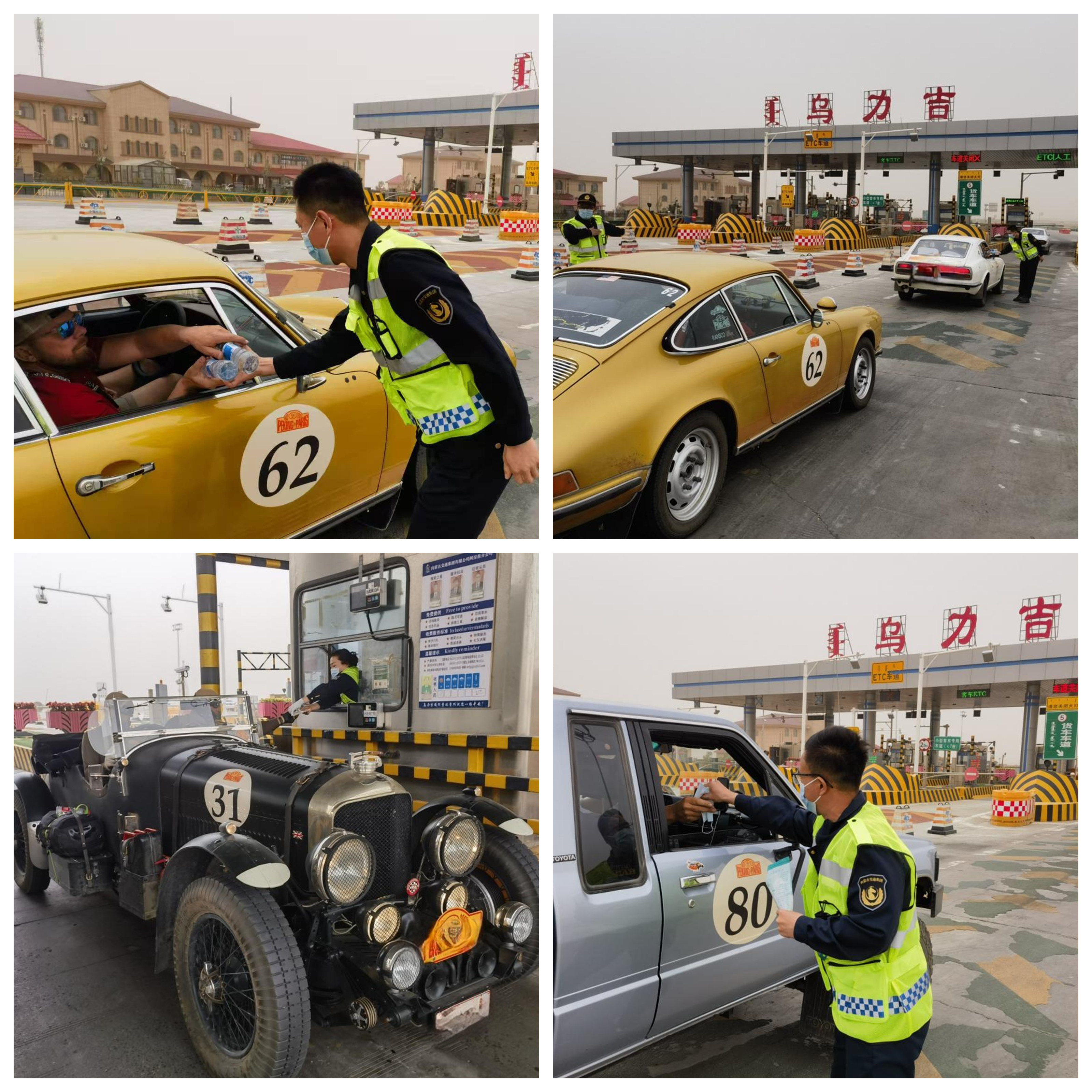 5月21日上午,烏力吉蘇木鎮(zhèn)陣風7級以上,同時伴有沙塵。烏力吉通行費收費所提前從網(wǎng)絡上關注到車隊通行信息,自發(fā)投入保障由70余輛老爺車組成的“流動的汽車博物館”拉力賽車隊通行工作,啟動專項服務預案。所站提前組織職工開展口語培訓,確保與國際車隊順暢溝通。在通行現(xiàn)場,增設專用車道,通過標準化手勢與簡單口語引導車輛有序駛入專用車道,確保車隊快速通行。針對惡劣天氣,職工們?yōu)檐囀置赓M提供礦泉水、防護口罩等物資,全程貼心服務贏得了外籍友人的高度贊譽。