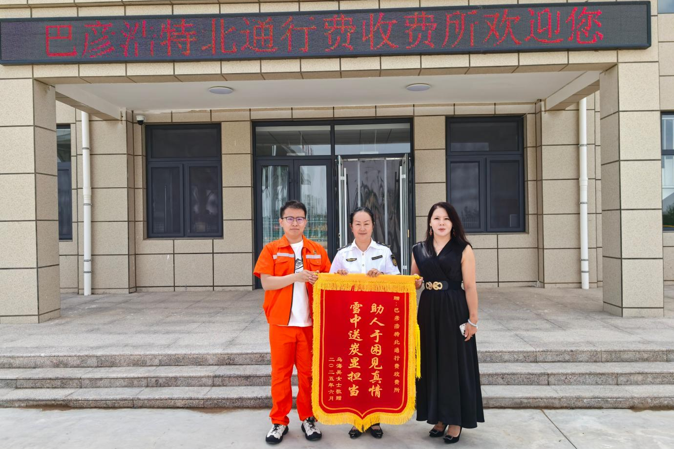 6月25日,吳女士專程前往巴彥浩特北收費(fèi)所送來(lái)錦旗,錦旗上的文字不僅是司乘真摯謝意的見(jiàn)證,更彰顯高速人“全心全意為司乘服務(wù)”的初心。