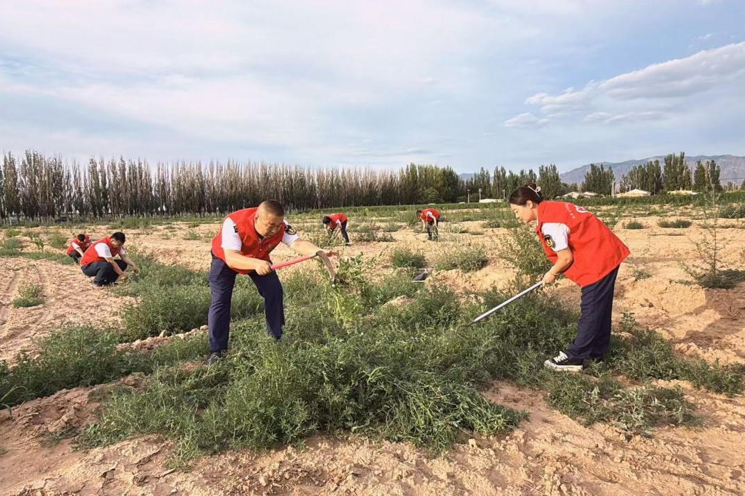 7月3日,南寺匝道收費所黨支部組織8名黨員志愿者走進塔塔水嘎查,為68歲獨居農(nóng)牧民王蘭香開展果園義務(wù)除草幫扶,以實際行動為群眾排憂解難,架起黨群“連心橋”。