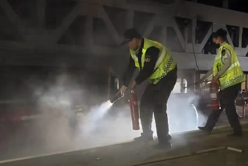 收費所工作人員迅速啟動消防應急預案,一邊組織疏散周邊車輛和人員,開辟安全區(qū)域;一邊帶領團隊拿起滅火器,對準火源根部精準噴射。經(jīng)過 30 分鐘奮力撲救,火勢得到有效控制,明火被成功撲滅。隨后,工作人員再次對車輛進行全面檢查,徹底排除復燃隱患。?