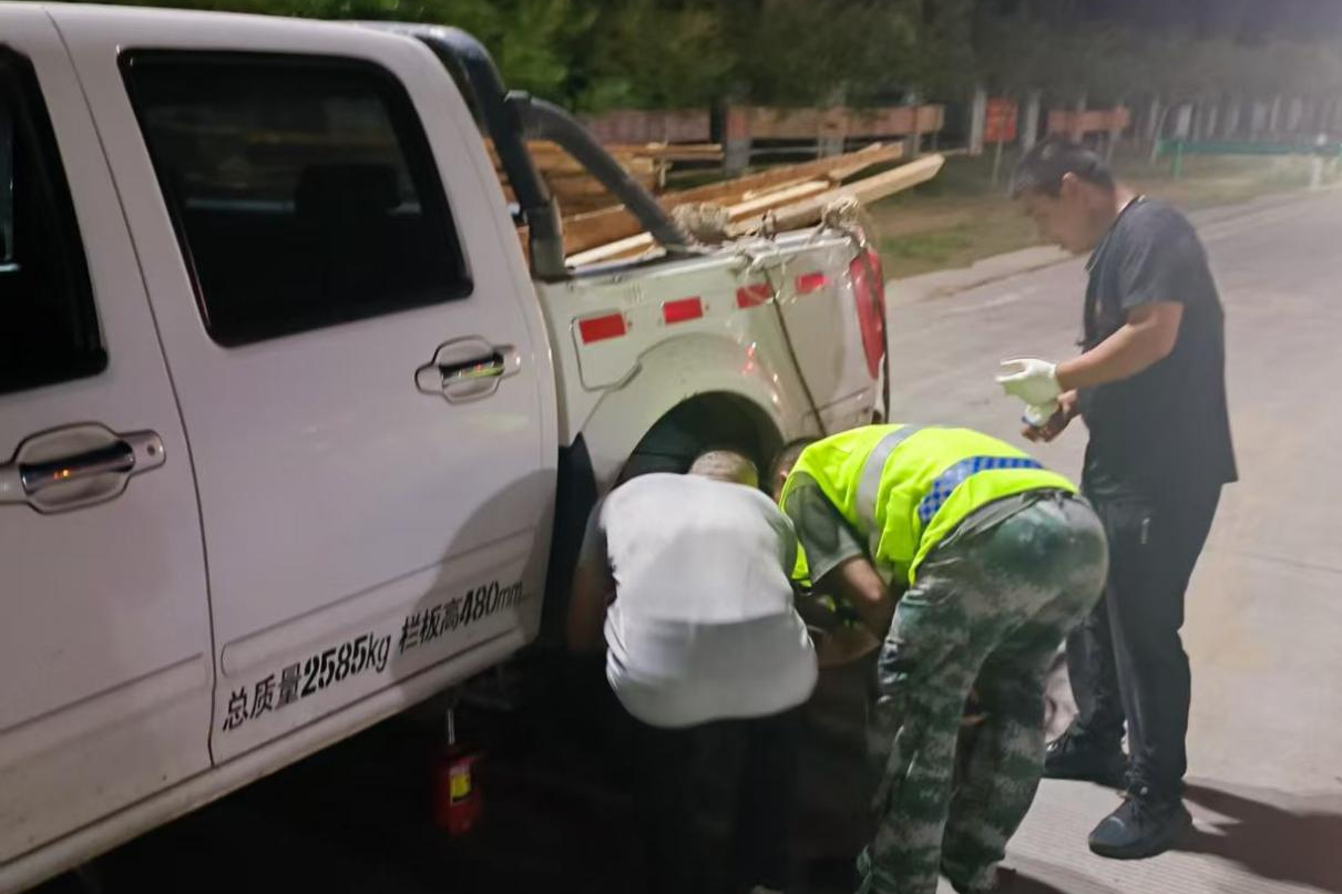 8月17日23時,一輛皮卡車緩緩駛?cè)爰m泰收費(fèi)所車道。司機(jī)面帶焦急地向工作人員求助,稱車輛突發(fā)爆胎,自己又未攜帶更換工具。工作人員見狀,立即與司機(jī)合力開展換胎工作,經(jīng)過半小時的努力,備用輪胎成功更換。司機(jī)對工作人員的及時援手連聲致謝,表示深夜遇到這種情況,若沒有他們幫忙,自己真不知該如何是好。