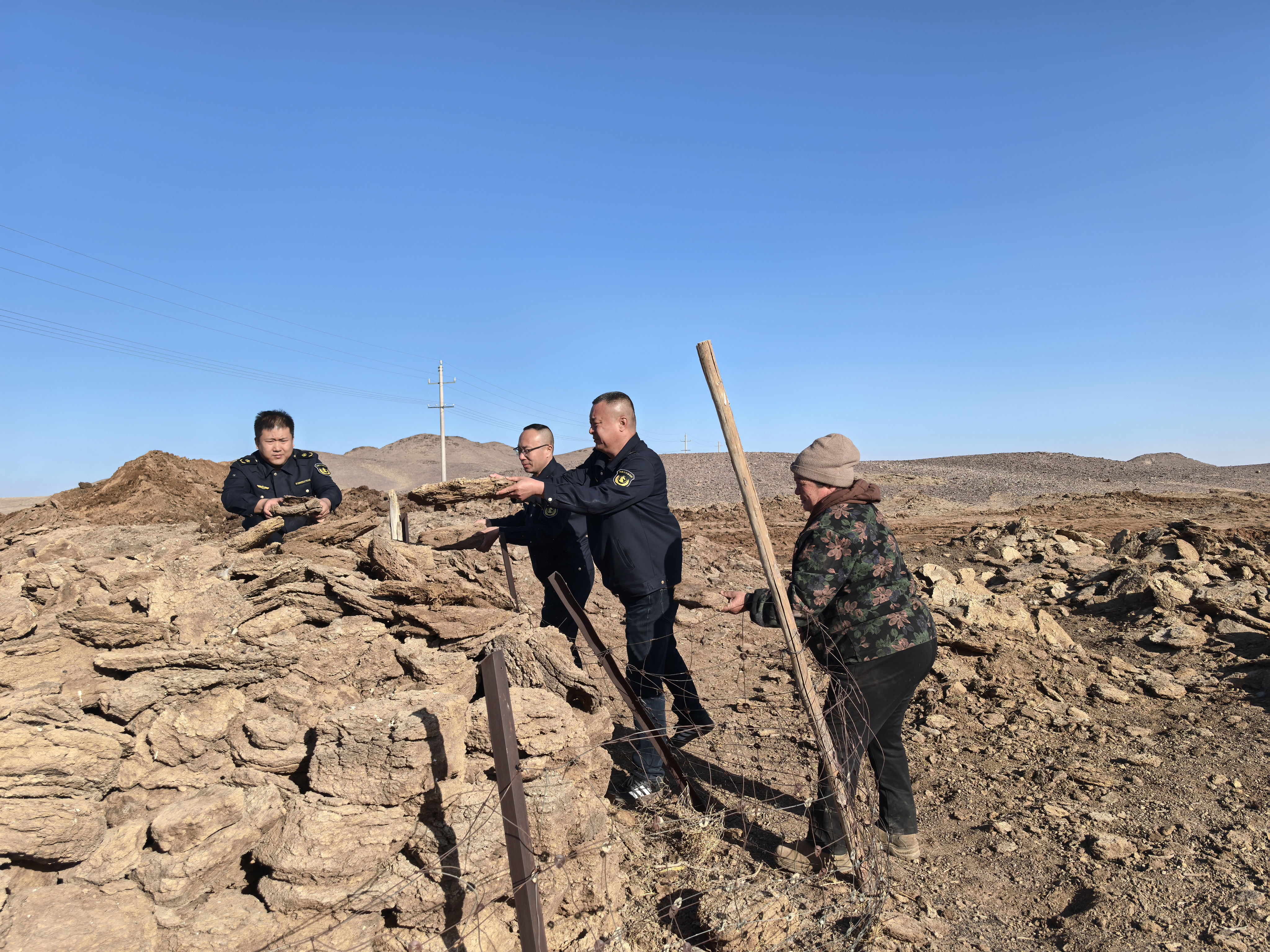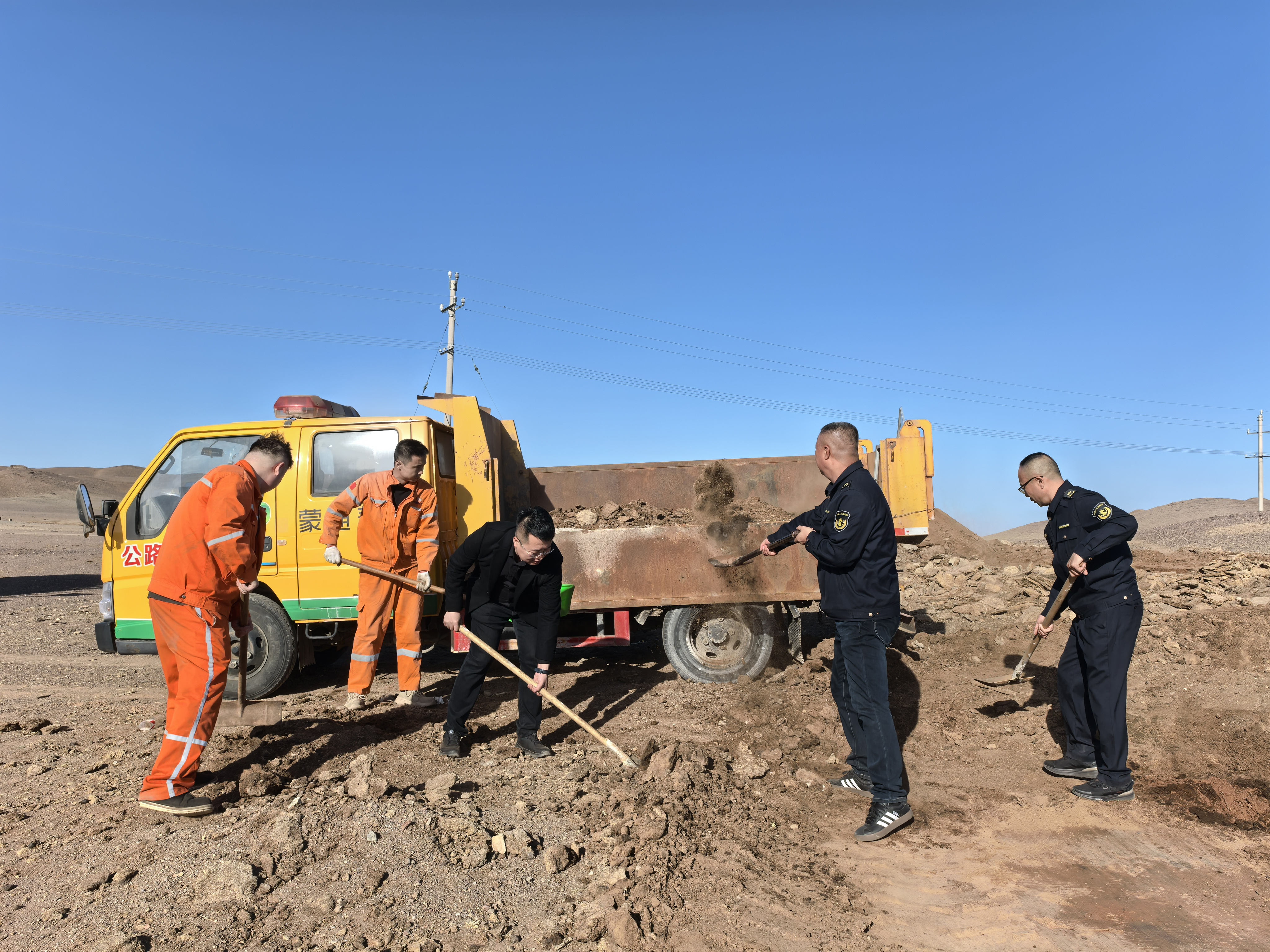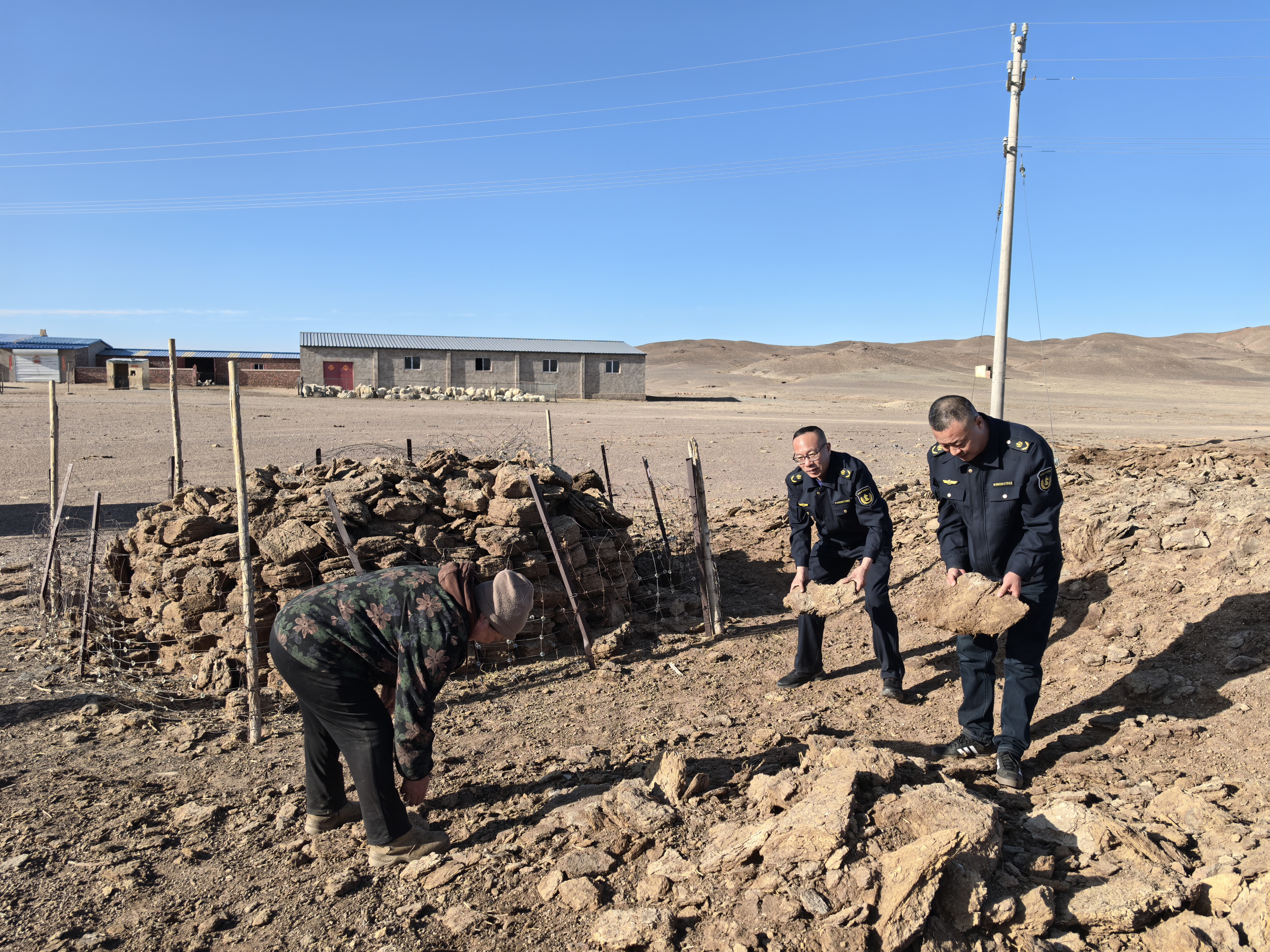 活動(dòng)中,黨員們充分發(fā)揮先鋒模范作用,齊心協(xié)力,相互配合,幫助牧民撿拾羊糞、牛糞,利用養(yǎng)護(hù)機(jī)械幫助牧民朋友共同完成了羊糞堆放工作。此外,因今年雨水充足,牧民朋友回家的路被雨水沖斷,大家利用機(jī)械幫助他們把回家路上的坑槽一一填補(bǔ),方便了他們的出行,用實(shí)際行動(dòng)傳遞關(guān)懷和溫暖,讓駐地周邊牧民感受到了中華民族一家親的良好氛圍。