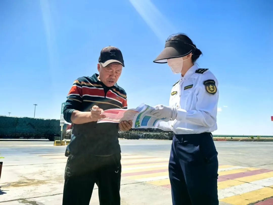 黨員志愿者在服務(wù)區(qū)顯著位置擺放咨詢臺,手持標(biāo)注清晰的渡陰山路線圖,為旅客詳細(xì)講解沿途景點、交通節(jié)點及避堵建議。針對貨車司機群體,黨員們重點推廣“蒙e行”平臺,現(xiàn)場演示積分兌換、高速路況查詢等功能,幫助司機掌握加油折扣、維修優(yōu)惠等實用福利,讓智慧出行成為旅途標(biāo)配。同時,向過往旅客發(fā)放“鑄牢中華民族共同體意識”主題宣傳圖冊,結(jié)合地域特色講述民族團(tuán)結(jié)故事,普及民族政策知識。