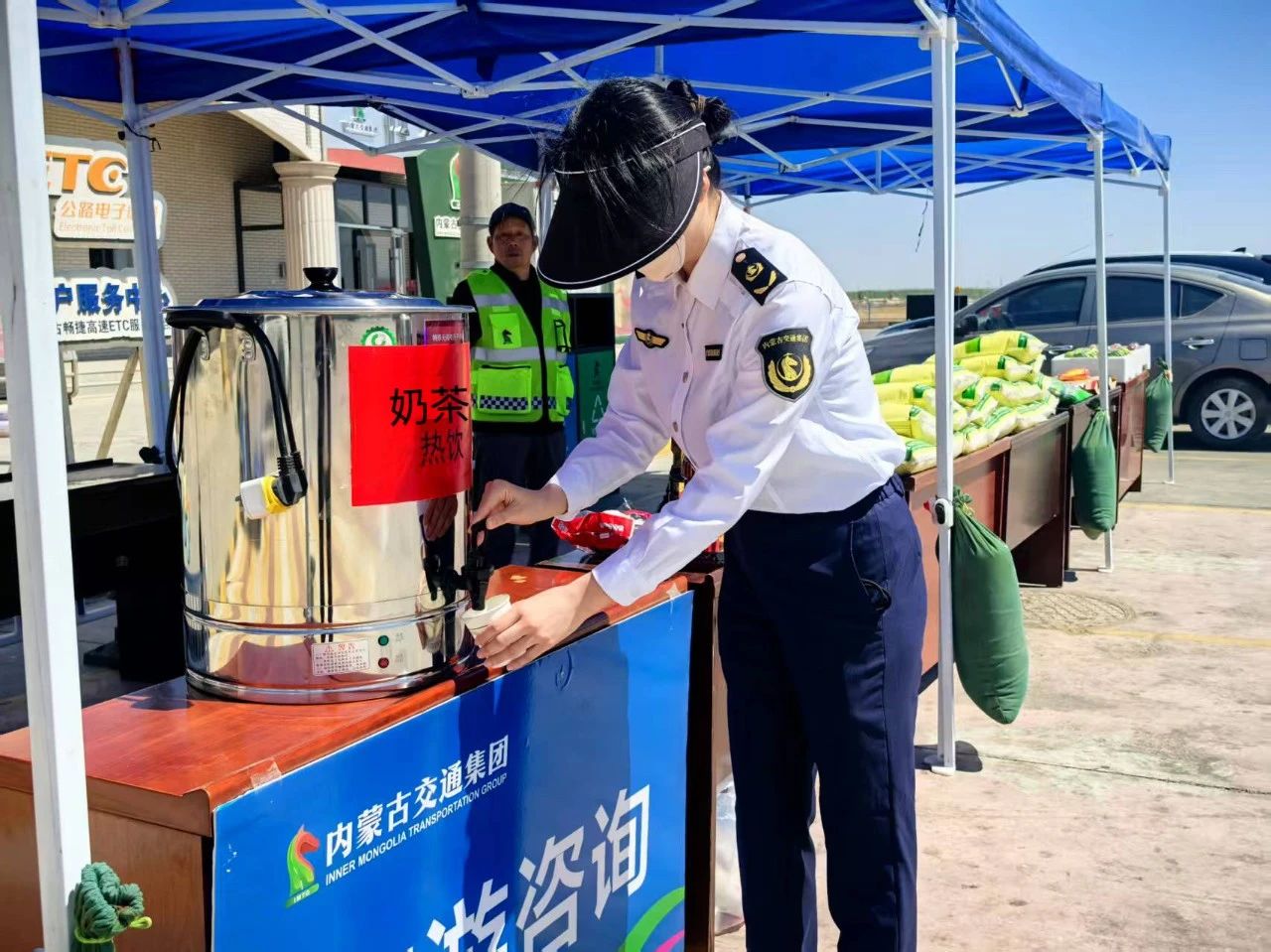 活動現(xiàn)場,服務(wù)區(qū)黨員干部化身“暖心服務(wù)員”與“政策宣講員”,在場區(qū)設(shè)立便民服務(wù)點,為過往司乘人員免費提供蒙古特色奶茶。一杯杯熱氣騰騰的奶茶,驅(qū)散了旅途的疲憊,也讓司乘人員感受到了家的溫暖?!斑@奶茶真是及時雨,跑長途就想喝口熱乎的,太感謝你們了!”一位貨車司機接過熱水時感激地說道。