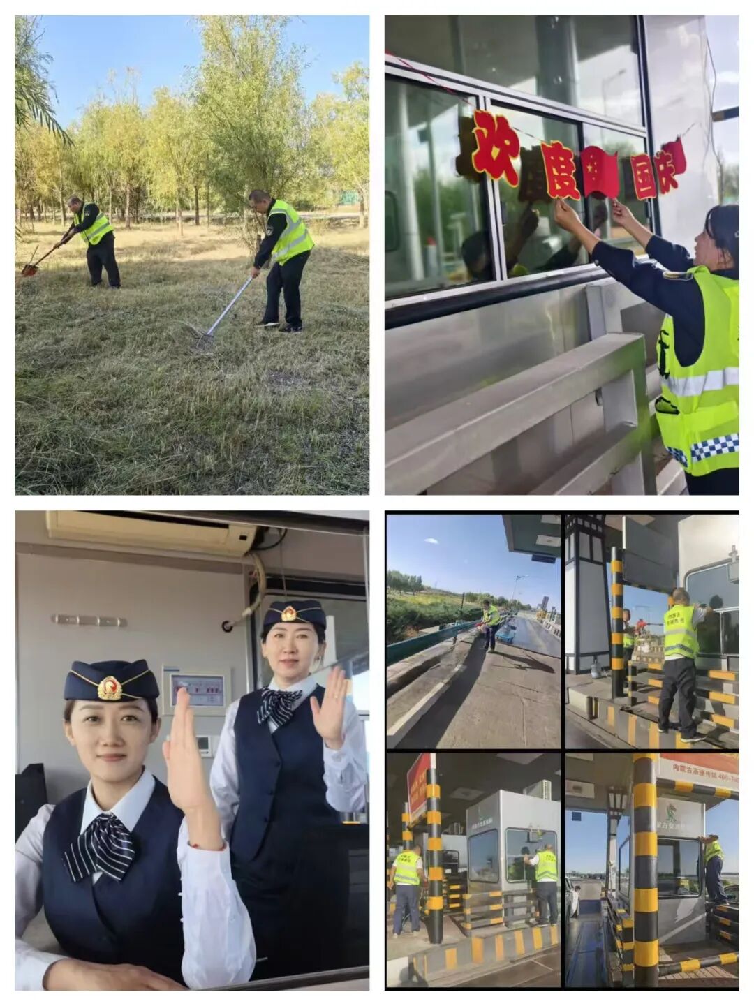西小召收費所組織職工開展“除草攻堅戰(zhàn)”,在轟鳴的割草機聲中,道路兩旁雜草被徹底清理,所站環(huán)境煥然一新。同時,收費現(xiàn)場以“中國紅”為主色調(diào)裝點,五星紅旗迎風飄揚,窗花彩旗點綴其中,讓每一位駛?cè)氲乃境硕寄芨惺艿綕鉂獾墓?jié)日喜悅。臨河收費所則將全所清潔作為“主戰(zhàn)場”,職工分工明確、干勁十足,從車道到崗亭,從廣場到便民設施,處處擦拭、細致打磨,讓窗口形象更加明亮整潔,以最美姿態(tài)喜迎佳節(jié)。