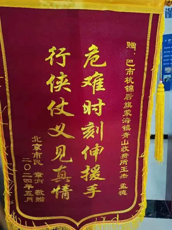 6月4日,青山高速公路收費(fèi)所收到了一份特殊的禮物——一面印有“危難時(shí)刻伸援手 行俠仗義見(jiàn)真情 ”的錦旗。