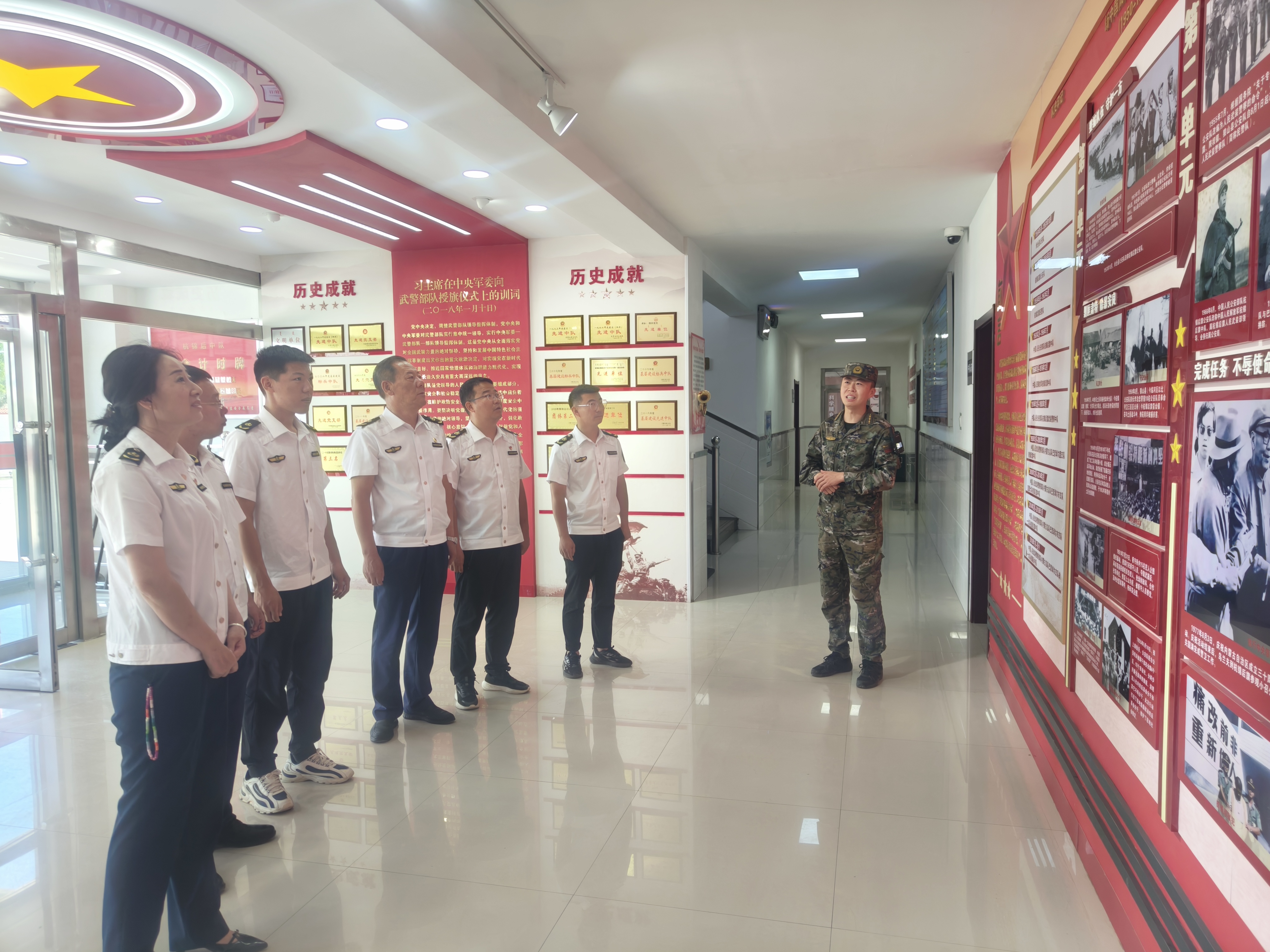 首先,武警中隊(duì)長(zhǎng)向大家介紹了中隊(duì)基本情況,帶領(lǐng)大家參觀了官兵宿舍、圖書(shū)室、榮譽(yù)室、物資庫(kù)和蔬菜大棚等場(chǎng)地,并向大家詳細(xì)講解了武警中隊(duì)日常訓(xùn)練科目和搶險(xiǎn)救援、執(zhí)勤等任務(wù),讓大家深入了解到了部隊(duì)武警官兵的日常生活和工作。最后,參觀了警示教育基地,映入眼簾的是算好三筆賬:算好政治賬、算好經(jīng)濟(jì)賬、算好家庭賬,人生在世,其實(shí)“人人心里有本賬”,但是算法不同,結(jié)局就可能天差地別。