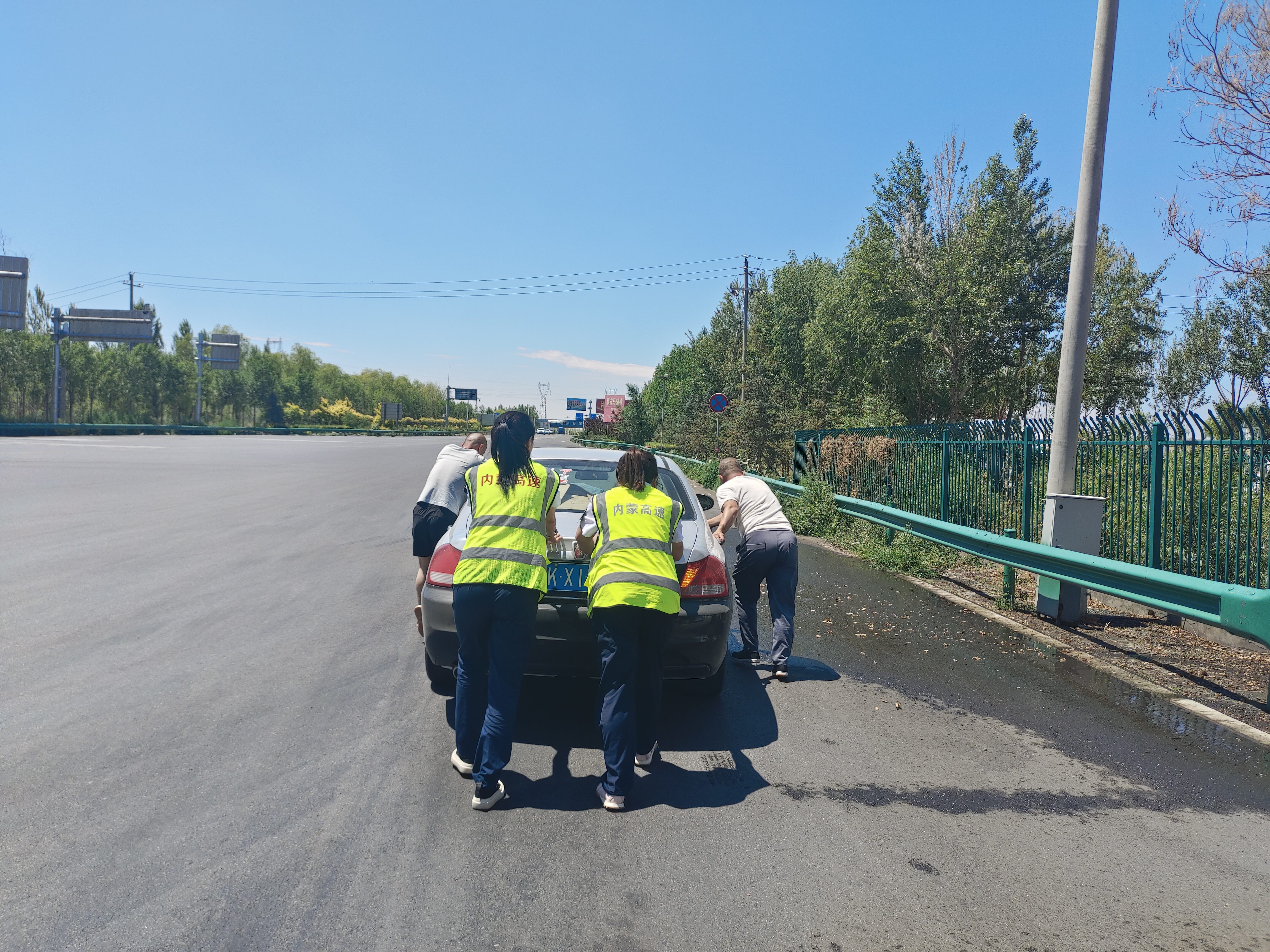 6月14日,一輛小轎車駛?cè)肱R河?xùn)|收費(fèi)所出口車道停止不前,當(dāng)班班長立即趕到收費(fèi)現(xiàn)場了解情況,同時安排班組人員疏導(dǎo)后方車輛,確保車輛安全、快速通行。經(jīng)過詢問得知,該小車在進(jìn)入收費(fèi)站廣場后突發(fā)制動故障,駕駛員嘗試連續(xù)打火后,仍無法啟動車輛,無奈停留在車道內(nèi)。班長郝春霞在安撫駕駛員情緒同時,迅速組織班組人員?;酆屠铎o幫助司機(jī)將故障車輛推至外廣場安全地帶,幫助司乘人員解決燃眉之急。隨后幫助該車司機(jī)聯(lián)系了附近的維修人員。在維修人員到達(dá)現(xiàn)場后,才轉(zhuǎn)身離開。這時司機(jī)表示由衷的感謝:“今天幸虧有你們及時幫忙,謝謝你們?!?/span>