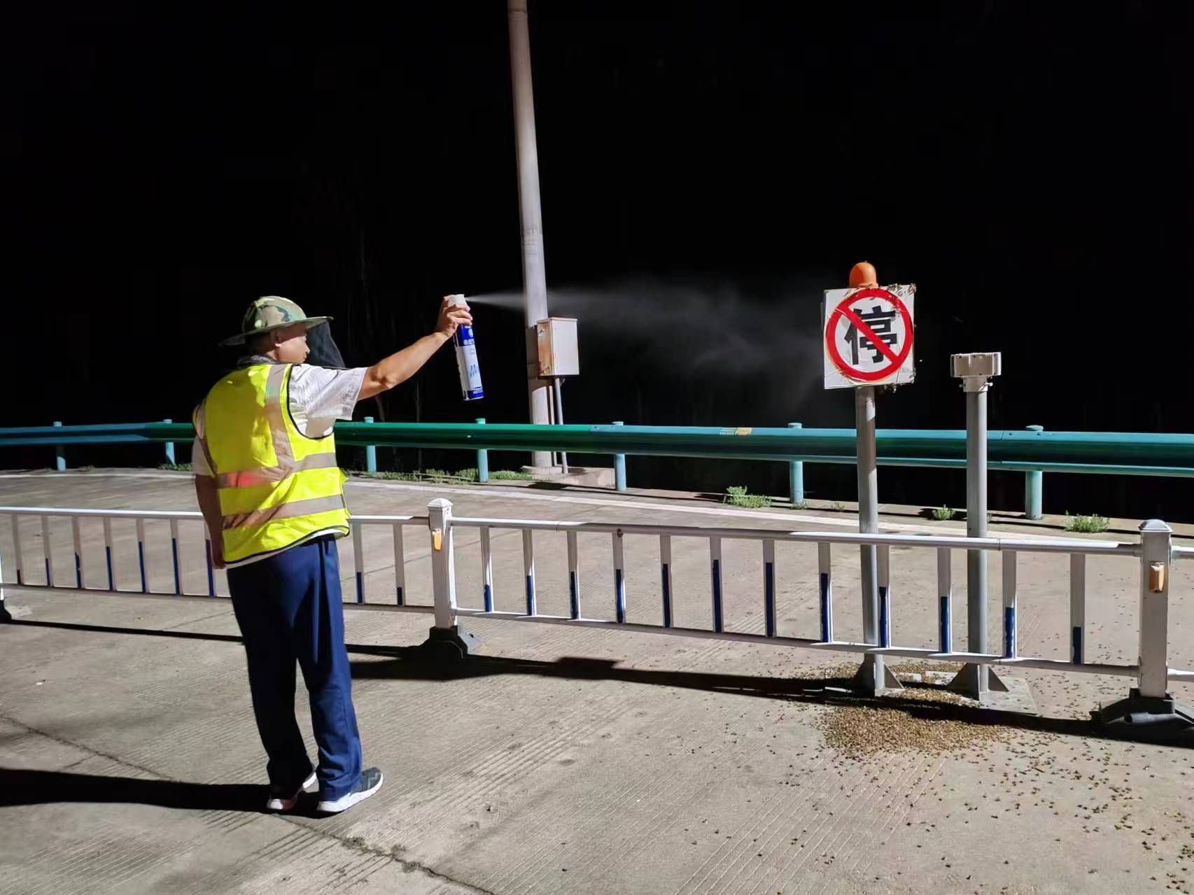 發(fā)現(xiàn)這一情況后,工作人員立即采取措施,6月19日晚上,夜幕降臨,隨著氣溫逐漸降低,蜜蜂們?cè)谕鈴V場(chǎng)找到了落腳點(diǎn)。當(dāng)班收費(fèi)員陳嘉、馬苗苗找到蜂群落腳點(diǎn),觀察到蜜蜂們聚集了三堆,陳嘉立即戴好防蜂帽,使用殺蟲劑進(jìn)行除蜂,經(jīng)過一個(gè)多小時(shí)的多次噴灑殺蟲劑處理,除蜂效果顯著,逗留在收費(fèi)站的蜜蜂被驅(qū)除干凈,順利消除了安全隱患。