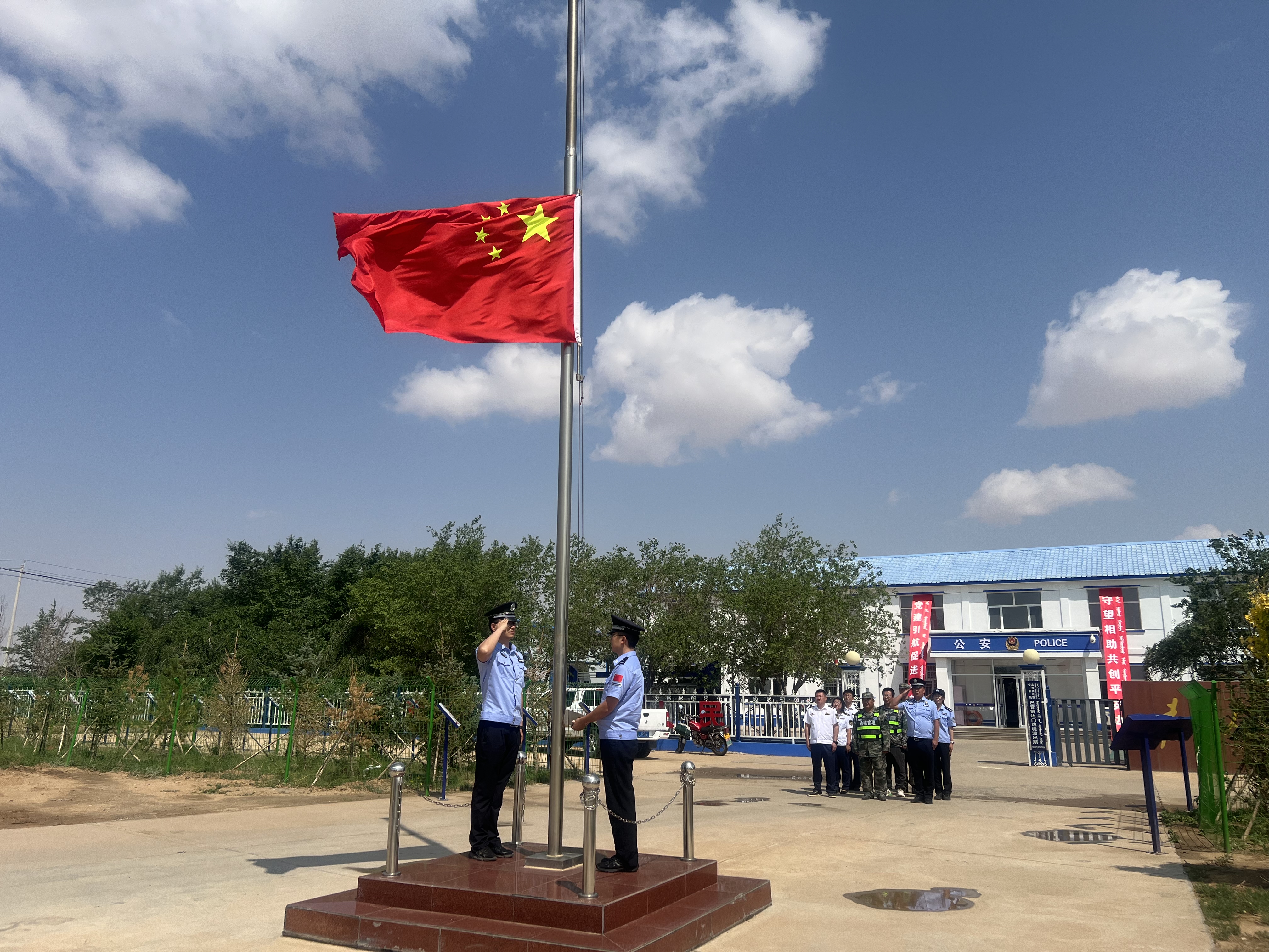 升旗儀式“銘”初心。前達(dá)門收費所黨支部聯(lián)合巴音前達(dá)門蘇木邊境派出所黨支部在派出所門口舉行升國旗活動。伴著清晨的第一縷陽光,在場黨員列隊整齊、莊嚴(yán)肅立,共同見證著五星紅旗冉冉升起的莊嚴(yán)時刻。通過舉行升旗儀式,進(jìn)一步激發(fā)了全體黨員的愛國主義情懷,增強(qiáng)了凝聚力和向心力。