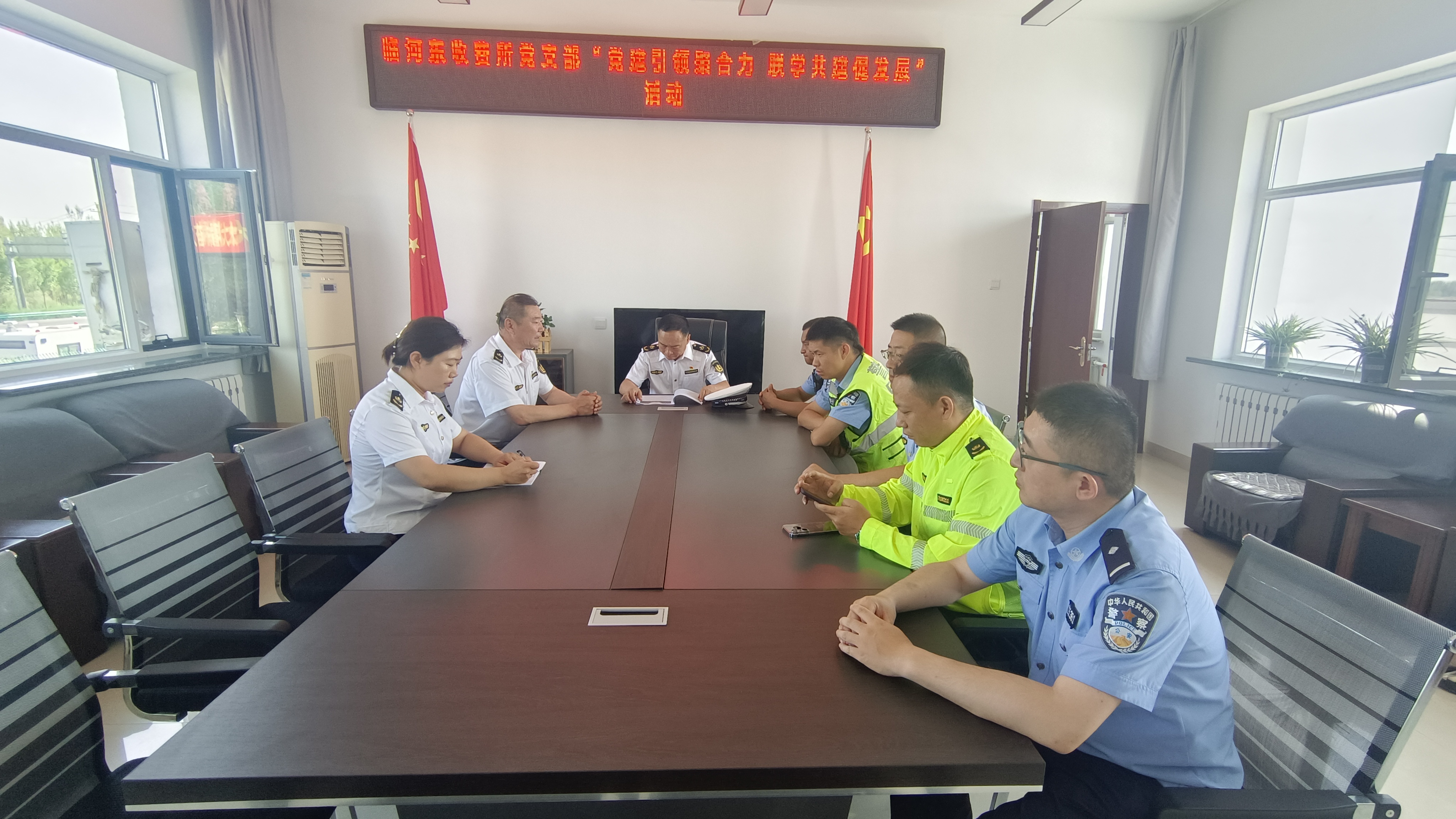 為進(jìn)一步深化國(guó)企黨建聯(lián)學(xué)共建活動(dòng),深入貫徹落實(shí)習(xí)近平總書(shū)記關(guān)于黨的紀(jì)律建設(shè)和組織工作的重要指示精神,充分發(fā)揮基層黨建引領(lǐng)作用,實(shí)現(xiàn)黨組織共享共建新模式。7月9日下午,臨河?xùn)|收費(fèi)所黨支部聯(lián)合路政十大隊(duì)一中隊(duì)、高速交警臨河中隊(duì)開(kāi)展了“黨建引領(lǐng)聚合力 聯(lián)學(xué)共建促發(fā)展”活動(dòng)。