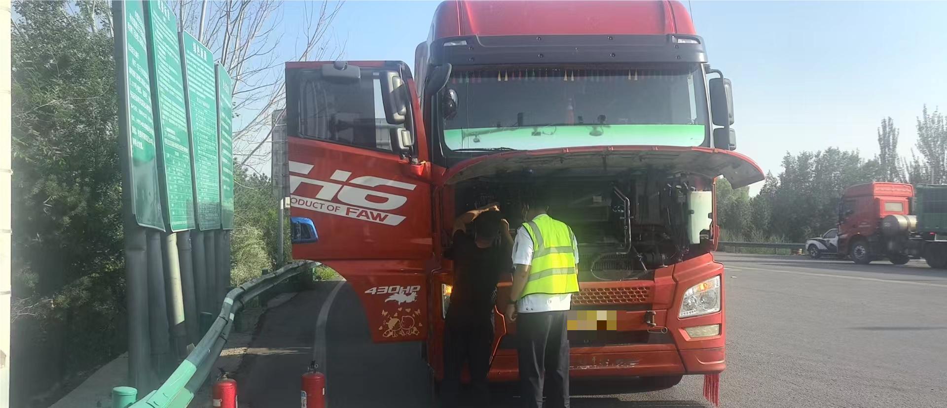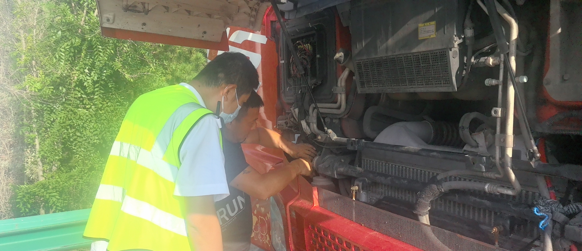 7月9日下午18時左右,一輛廂式貨車緩慢從出口駛來,??吭趦葟V場,當班班長于洋立即上前詢問情況。問詢得知,車輛不知什么原因無法正常行駛,熄火后打不著車,收費班長將情況上報值班所長后協助司乘將故障車輛推至安全區(qū)域,并協助聯系了修理廠。同一時間,入口駛來了一輛冒著黑煙的貨車,班長于洋隨即提起滅火器迅速跑過去,發(fā)現駕駛艙內已濃煙四起,未發(fā)現火源,經過多年的經驗,于洋讓司乘人員速將車輛主線路開關斷開,并打開車輛前引擎蓋,通過對車輛線路進行安全隱患排查,發(fā)現主線路部分線束磨損燒毀、剎車氣管和聯合器氣管已燒斷,于洋立即協助司乘人員整理了線路,并更換了新的氣管接頭,在保障安全前提下,司乘人員駛離了高速公路到就近修理廠進行維修檢查。