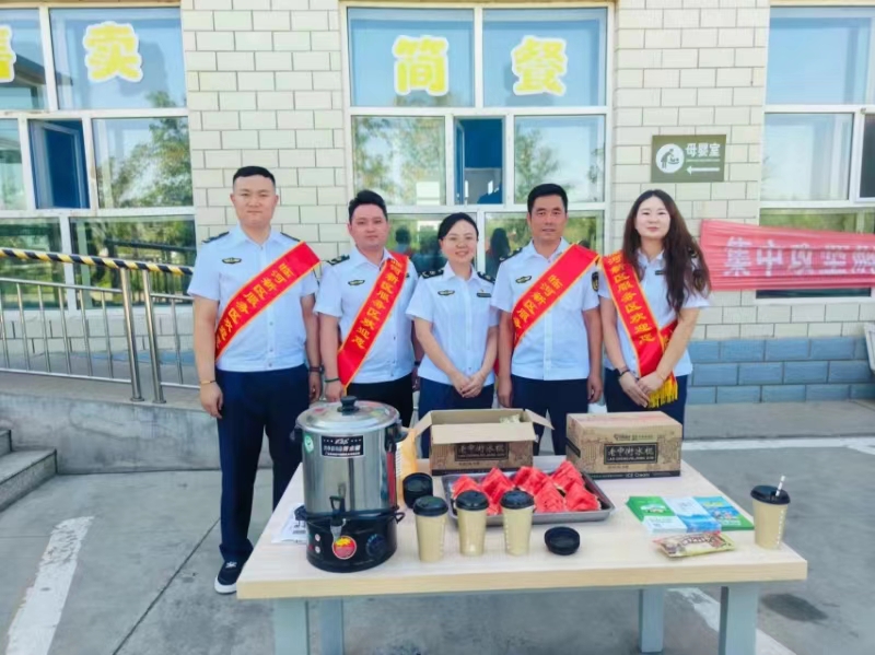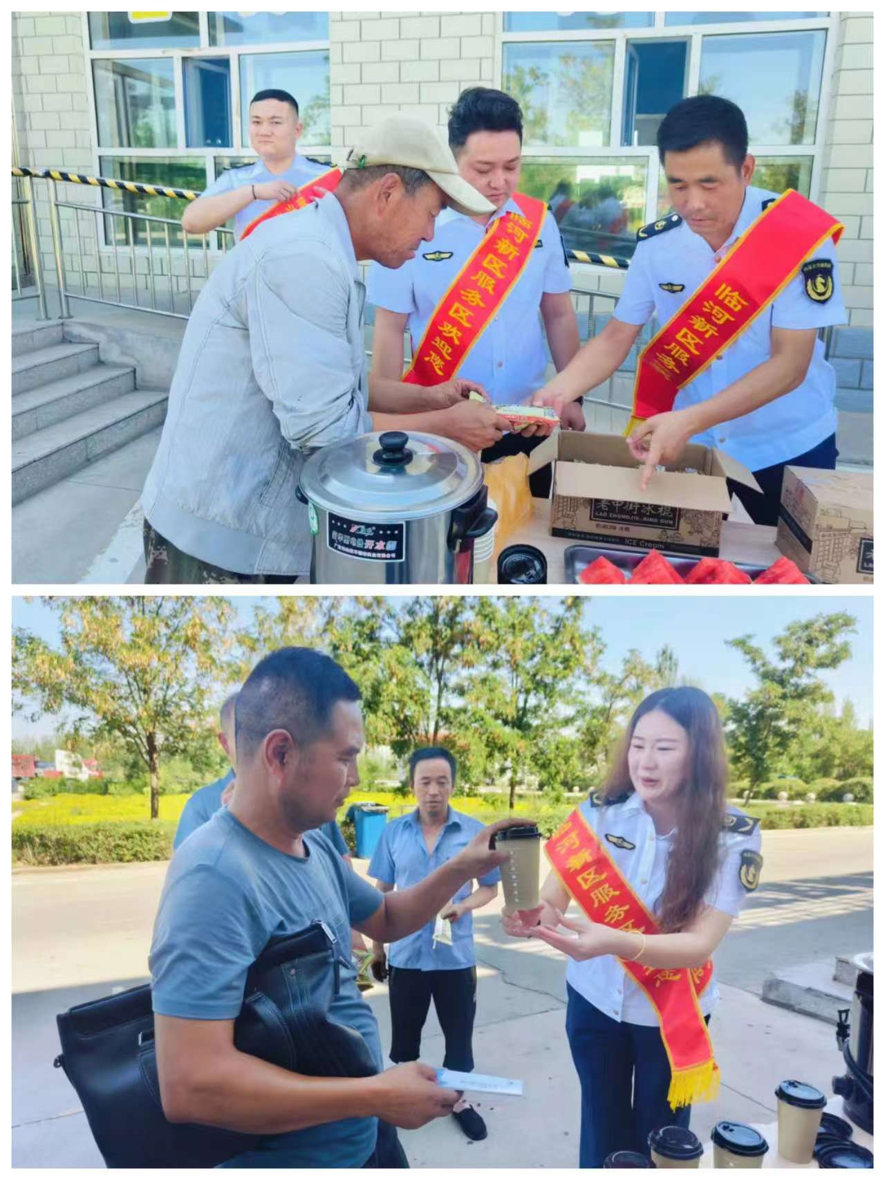 活動現(xiàn)場,臨河新區(qū)服務(wù)區(qū)工作人員熱情地向過往司乘人員遞上冰棍、綠豆湯、西瓜,幫助大家解暑降溫,服務(wù)區(qū)貼心的準(zhǔn)備了一次性水杯和吸管,方便司乘人員飲用綠豆湯。叮囑駕駛?cè)藝?yán)防疲勞駕駛,提醒司乘朋友們安全駕駛,同時還向司乘朋友發(fā)放了巴彥淖爾旅游宣傳頁,積極宣傳巴彥淖爾旅游特色,助力地區(qū)旅游經(jīng)濟(jì)發(fā)展。
