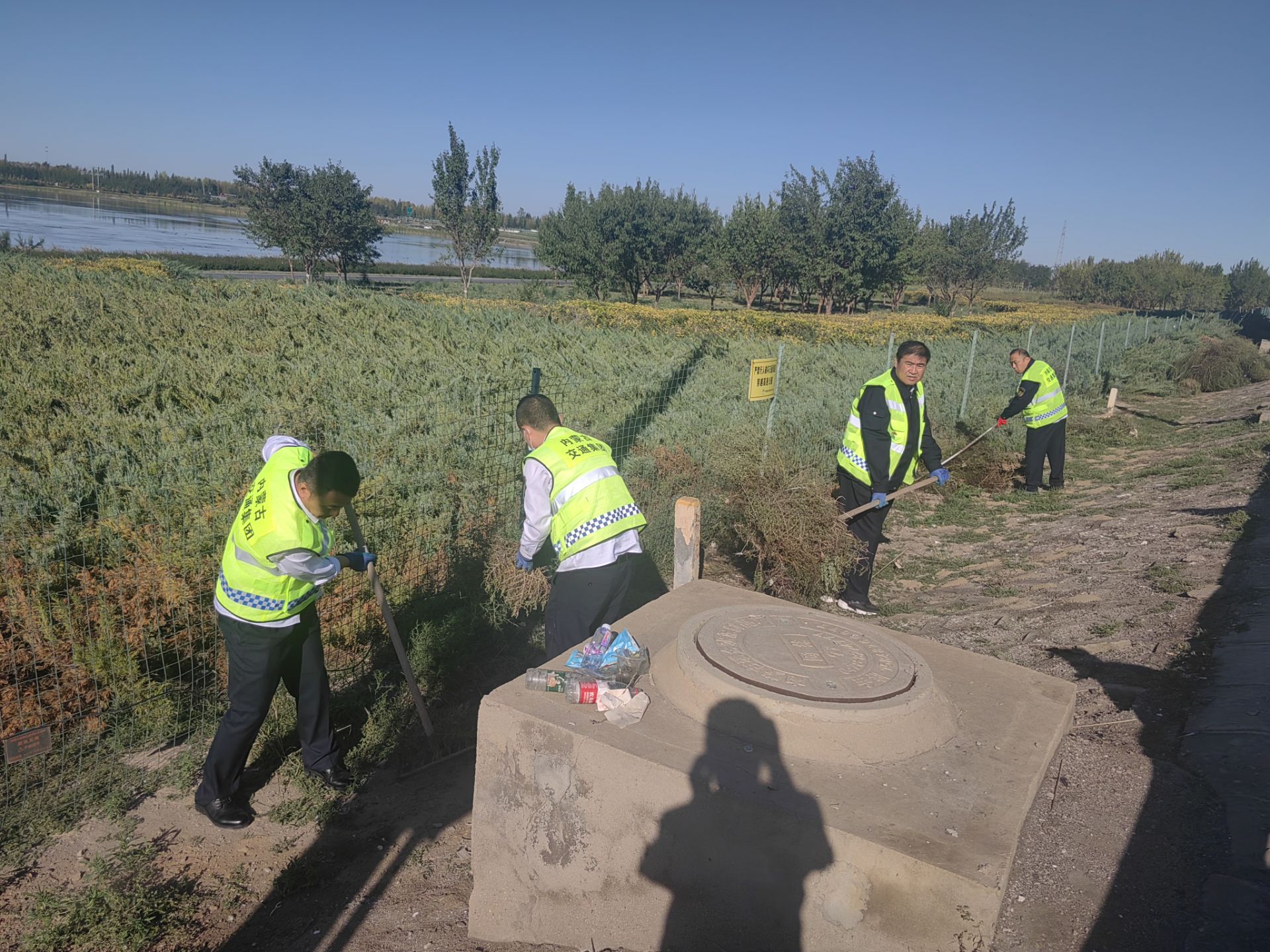 清掃期間,黨員們充分發(fā)揮“帶頭”作用,開展了從表及里、由外而內(nèi)的衛(wèi)生大掃除。對(duì)車道標(biāo)識(shí)牌進(jìn)行維修和調(diào)正,對(duì)通道鐵欄桿進(jìn)行補(bǔ)漆修繕,對(duì)崗?fù)?、收費(fèi)島頭、稱臺(tái)以及各類收費(fèi)附屬設(shè)施進(jìn)行擦洗,清除衛(wèi)生死角,亮化收費(fèi)環(huán)境。同時(shí),利用鐵鍬、耙子等工具對(duì)收費(fèi)站區(qū)邊坡上雜物和綠化帶中的白色垃圾、雜草、枯枝進(jìn)行“地毯式”全面清理。