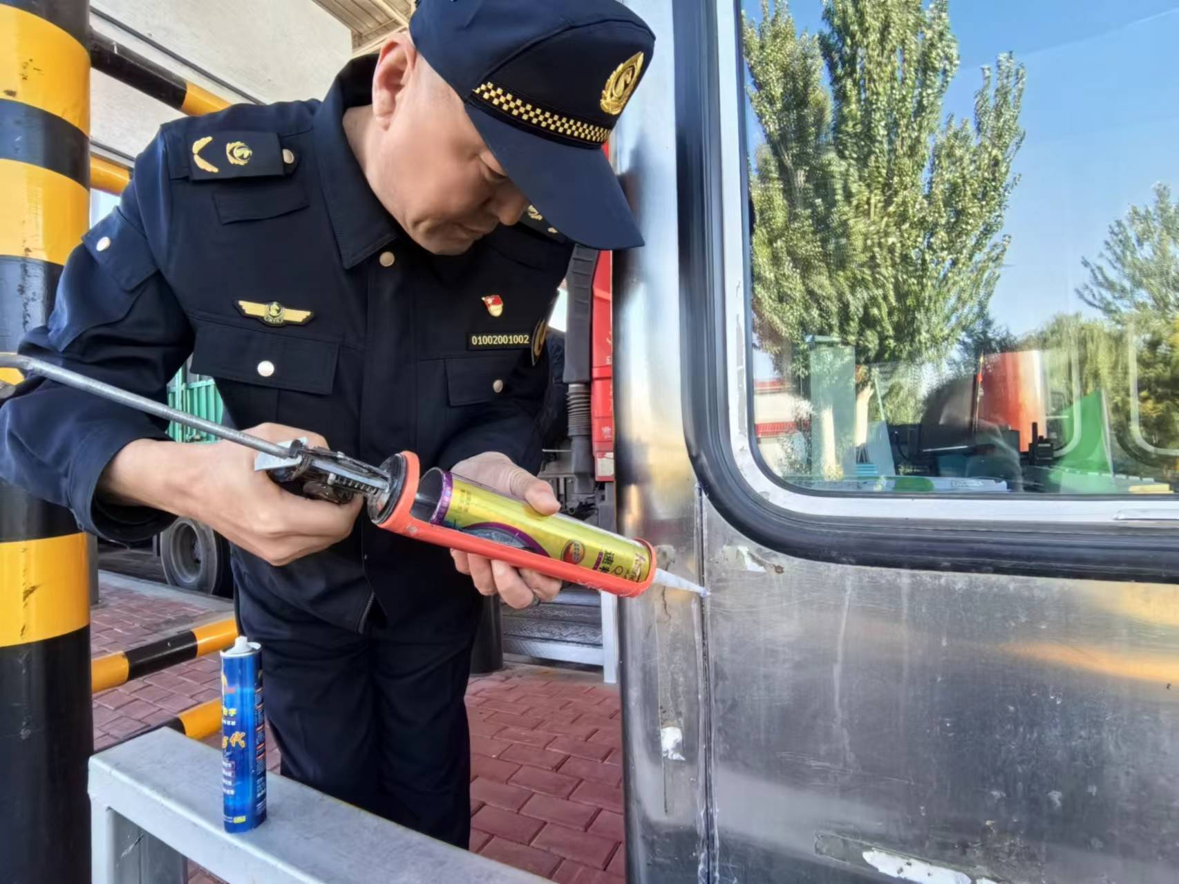 10月10日上午,值班所長吳忠對所有收費崗亭及站內的取暖設備進行全面檢查,針對收費票亭外鐵板連接處的漏風嚴重現(xiàn)象,當班收費班長于洋立即找來密封膠對票亭漏風處進行打膠密封,全力保障正常保暖,在降本增效的同時,做到讓職工滿意。