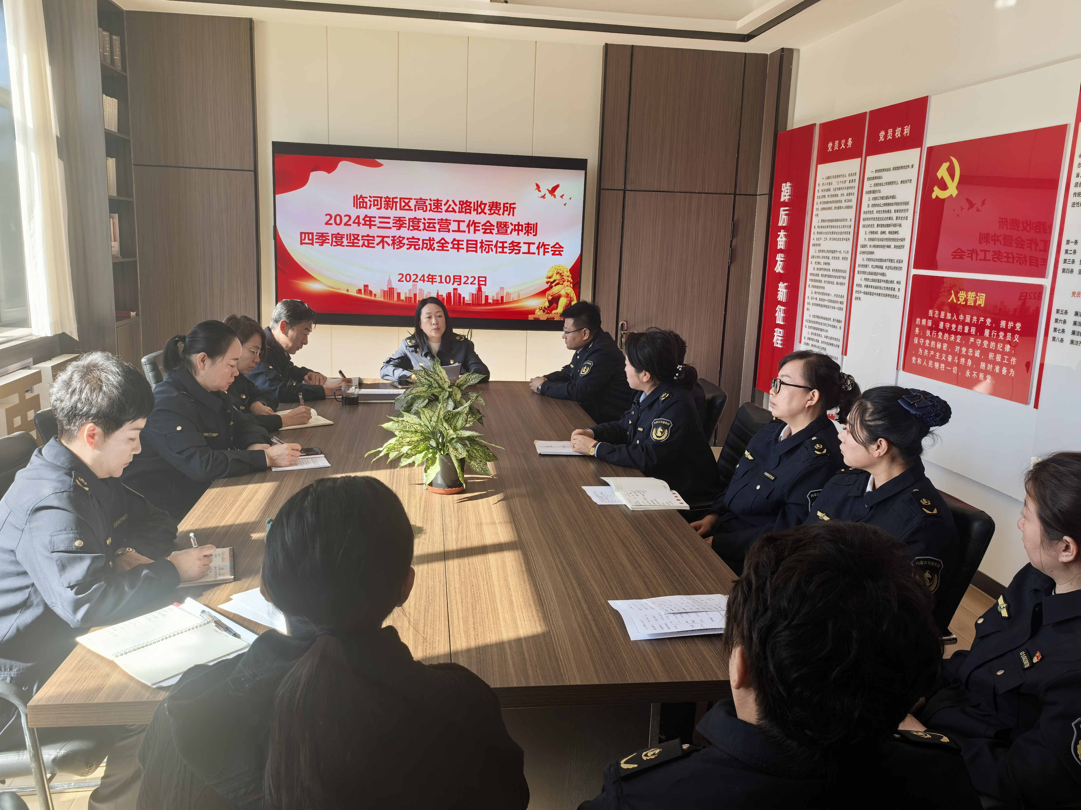會上,朱聰玲所長對臨河新區(qū)收費(fèi)所前三季度工作進(jìn)行全面總結(jié),分析當(dāng)前工作存在的問題及短板,并對第四季度重點(diǎn)工作進(jìn)行安排部署。動員全所上下進(jìn)一步強(qiáng)化責(zé)任擔(dān)當(dāng),嚴(yán)守工作紀(jì)律,苦干實干,確保高質(zhì)量完成全年目標(biāo)任務(wù),奮力奪取“全年紅”。