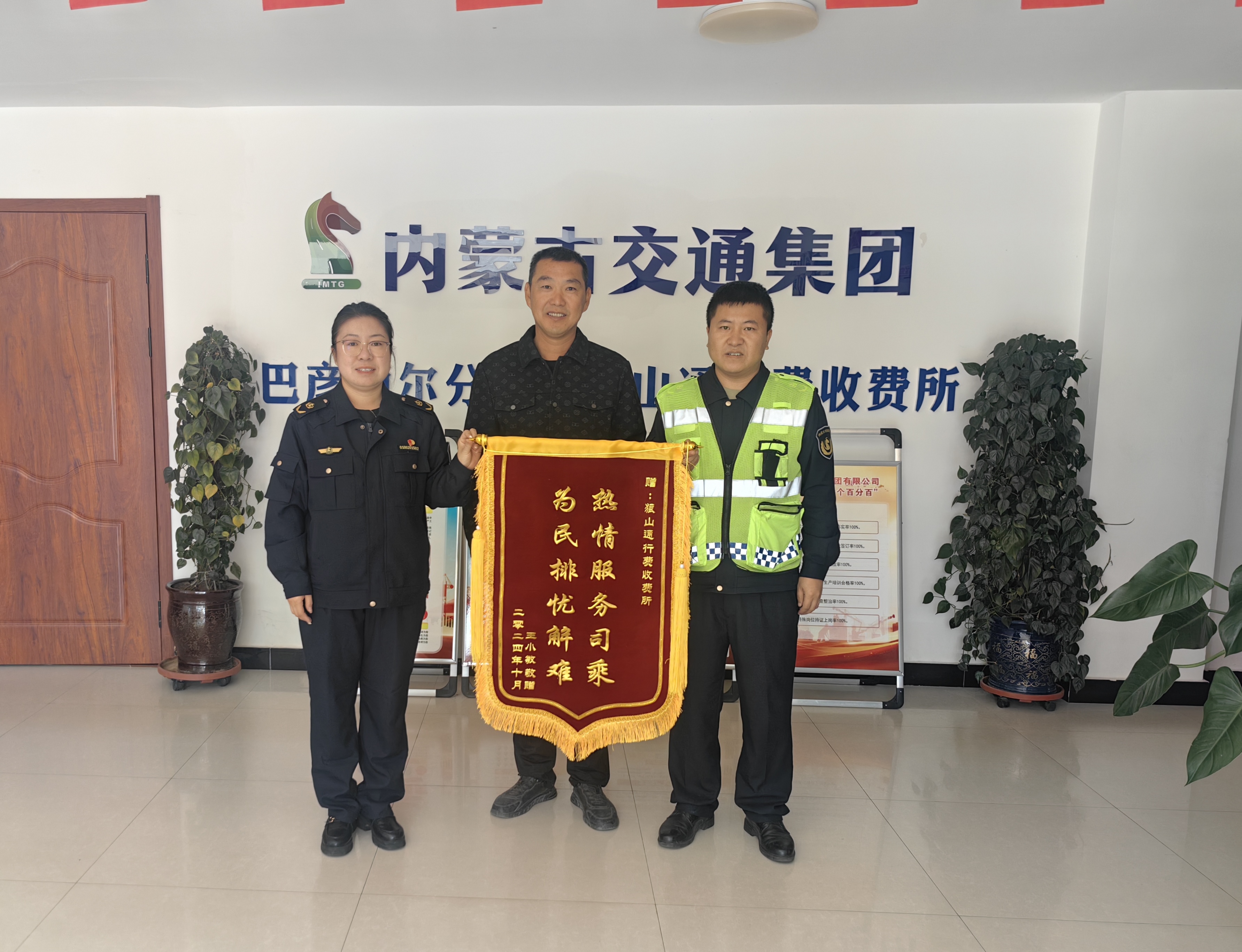 “熱情服務司乘、為民排憂解難”的字樣熠熠生輝,它彰顯的是司乘人員對我們熱情服務、及時幫助司乘解決困難的深深感激。無論是緊急情況下的快速響應,還是日常工作中的優(yōu)質文明服務,收費所都在用實際行動詮釋著良好的窗口形象。