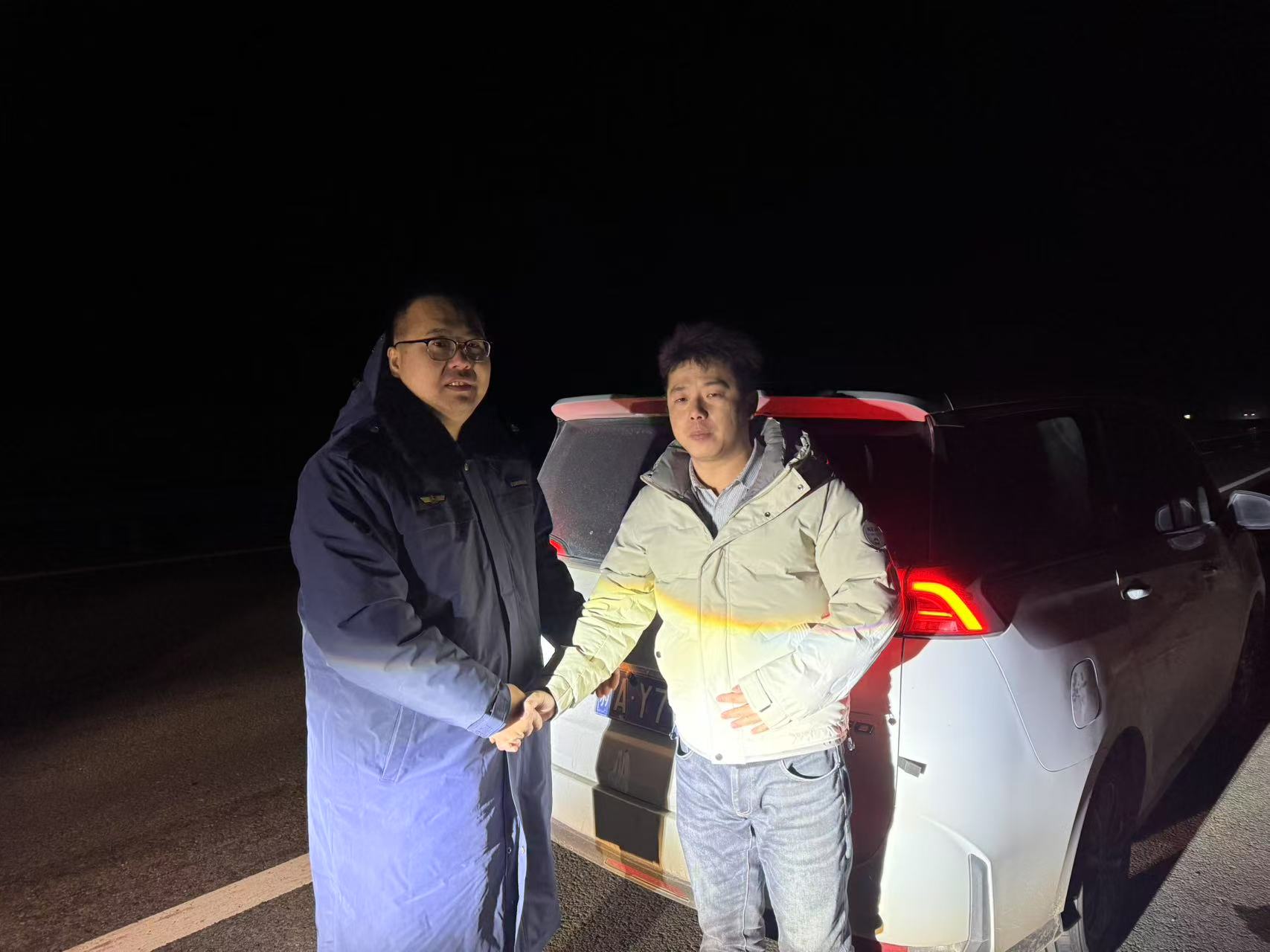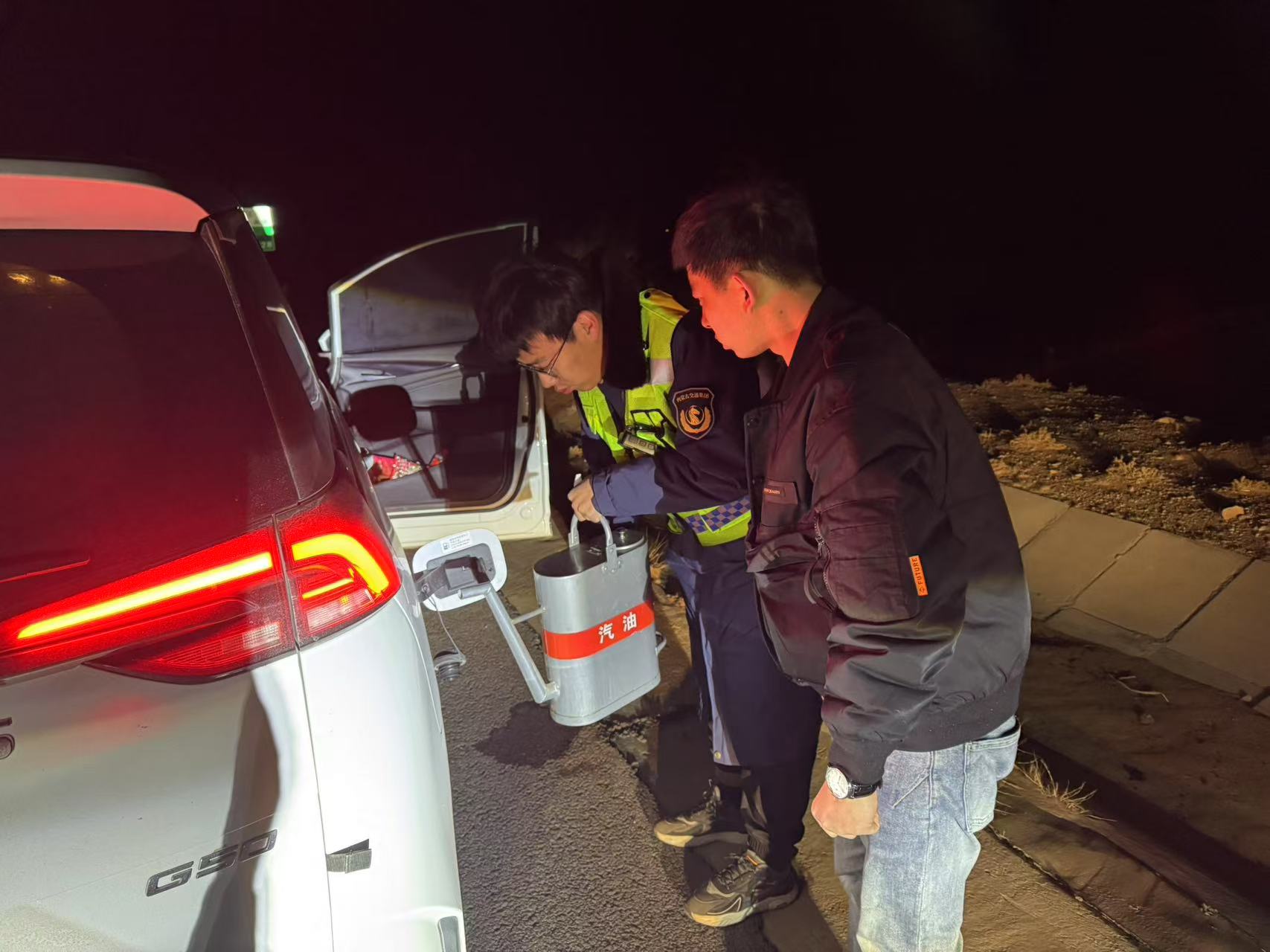 隨后,管理人員與加油站積極協(xié)調(diào)購買散裝汽油,并第一時(shí)間化身“油遞員”,在經(jīng)過1個(gè)多小時(shí)、往返50多公里的路程后,最終將購買的汽油送往車輛被困點(diǎn)并幫助司乘加注燃油,切實(shí)解決被困車輛“燃油之急”,對于管理人員的幫助,被困司乘連連致謝并飽含熱淚地說道:“真的太謝謝你們了,多虧了你們,不然真不知道怎么辦好,大冷天的,心里一下就踏實(shí)了?!弊詈笤诠芾砣藛T的引導(dǎo)下該車前往服務(wù)區(qū)加油站補(bǔ)充燃油。