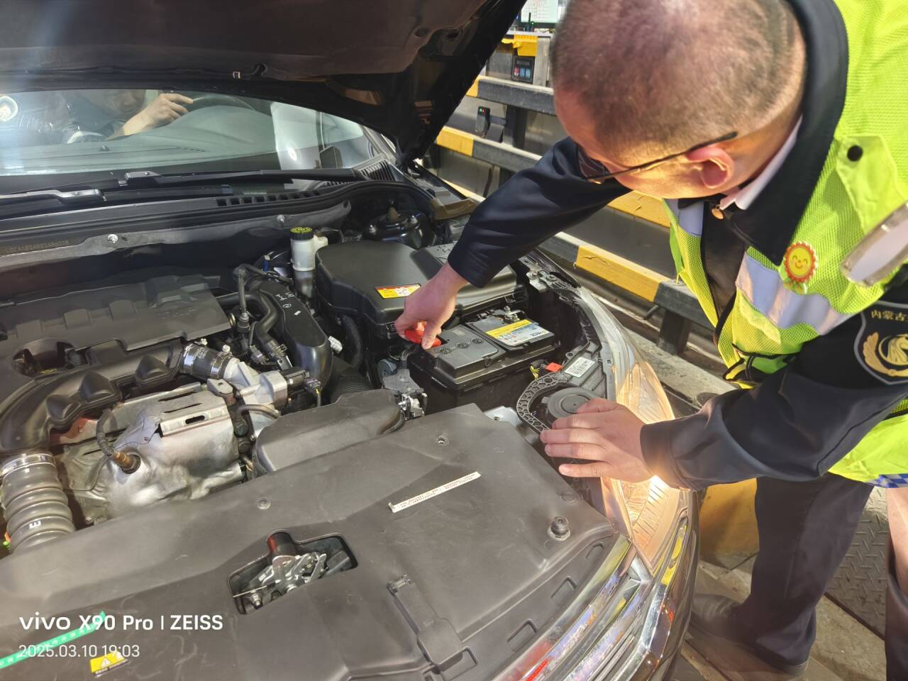 為了確保車輛和乘客的安全,收費員王鳳龍迅速引導車輛停靠至安全區(qū)域,并在車輛后方擺放錐心筒,確保收費現(xiàn)場安全有序。隨后,工作人員對車輛進行檢查,判斷可能是電瓶接觸不良,并與駕駛員一起排查故障,經(jīng)過約二十分鐘的處理,終于解決了駕駛員的燃眉之急。