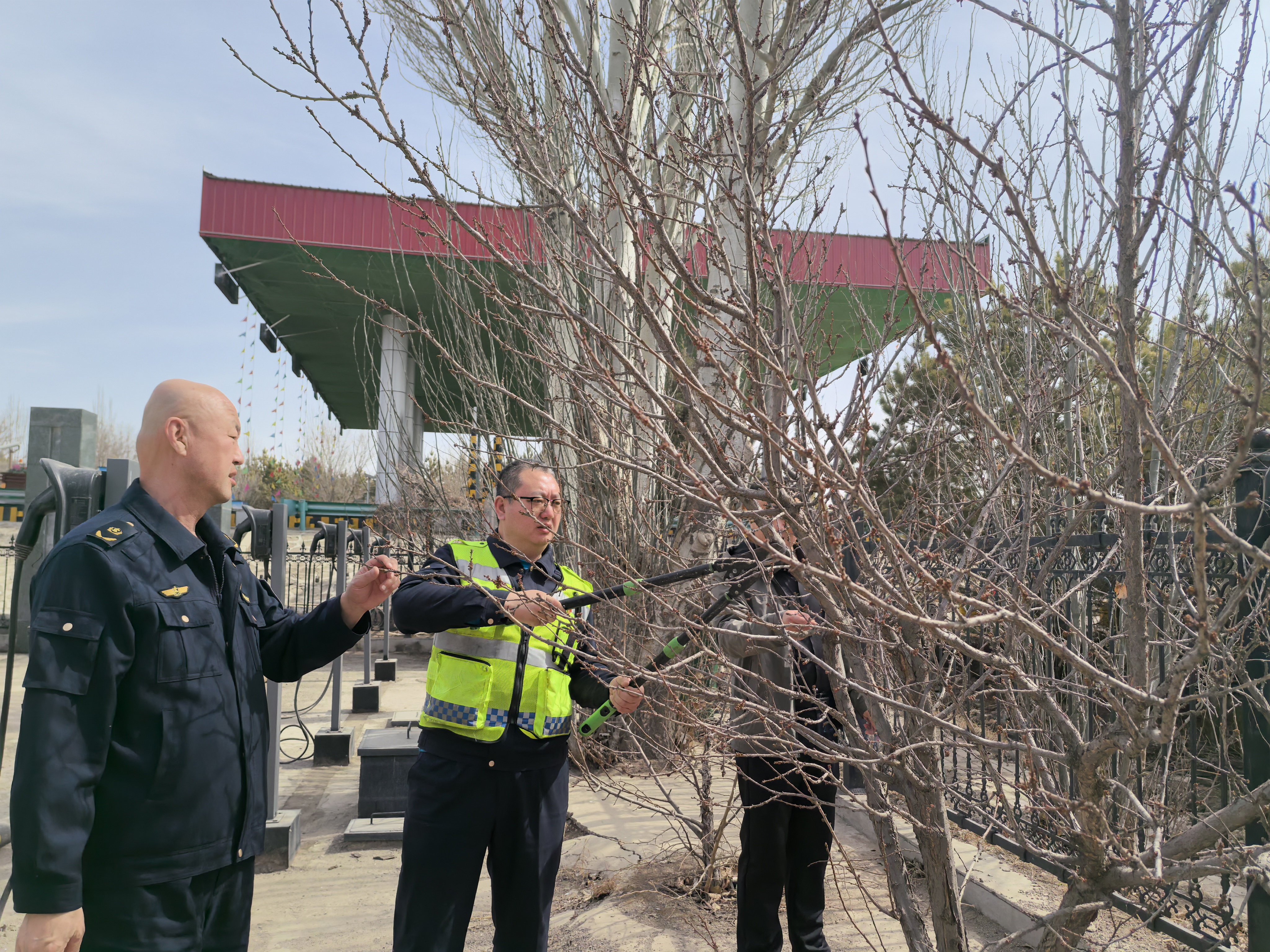 綠染枝頭,果香可期。首先,黨員吳忠和楊錦明兩名同志根據(jù)果樹(shù)的生長(zhǎng)習(xí)性和季節(jié)特點(diǎn),對(duì)站內(nèi)的果樹(shù)進(jìn)行了精心修剪。通過(guò)去除枯枝、病枝以及過(guò)密的枝葉,不僅使果樹(shù)的形態(tài)更加美觀,也為果樹(shù)的健康生長(zhǎng)和春季的蓬勃發(fā)芽打下了良好基礎(chǔ),更為站區(qū)增添了一抹獨(dú)特的春日景致。