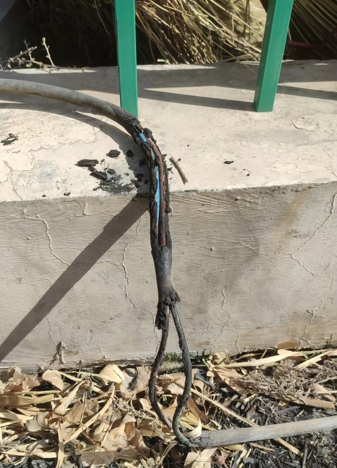 整改中,工作人員用絕緣膠帶從破損處約兩個(gè)帶寬的位置斜著包裹兩層,使膠帶貼緊,防止發(fā)生短路。同時(shí),將電線(xiàn)進(jìn)行重新固定,確保其安全可靠地懸掛,避免因電線(xiàn)交叉、纏繞、晃動(dòng)、拉扯而進(jìn)一步損壞絕緣膜,減少安全隱患。