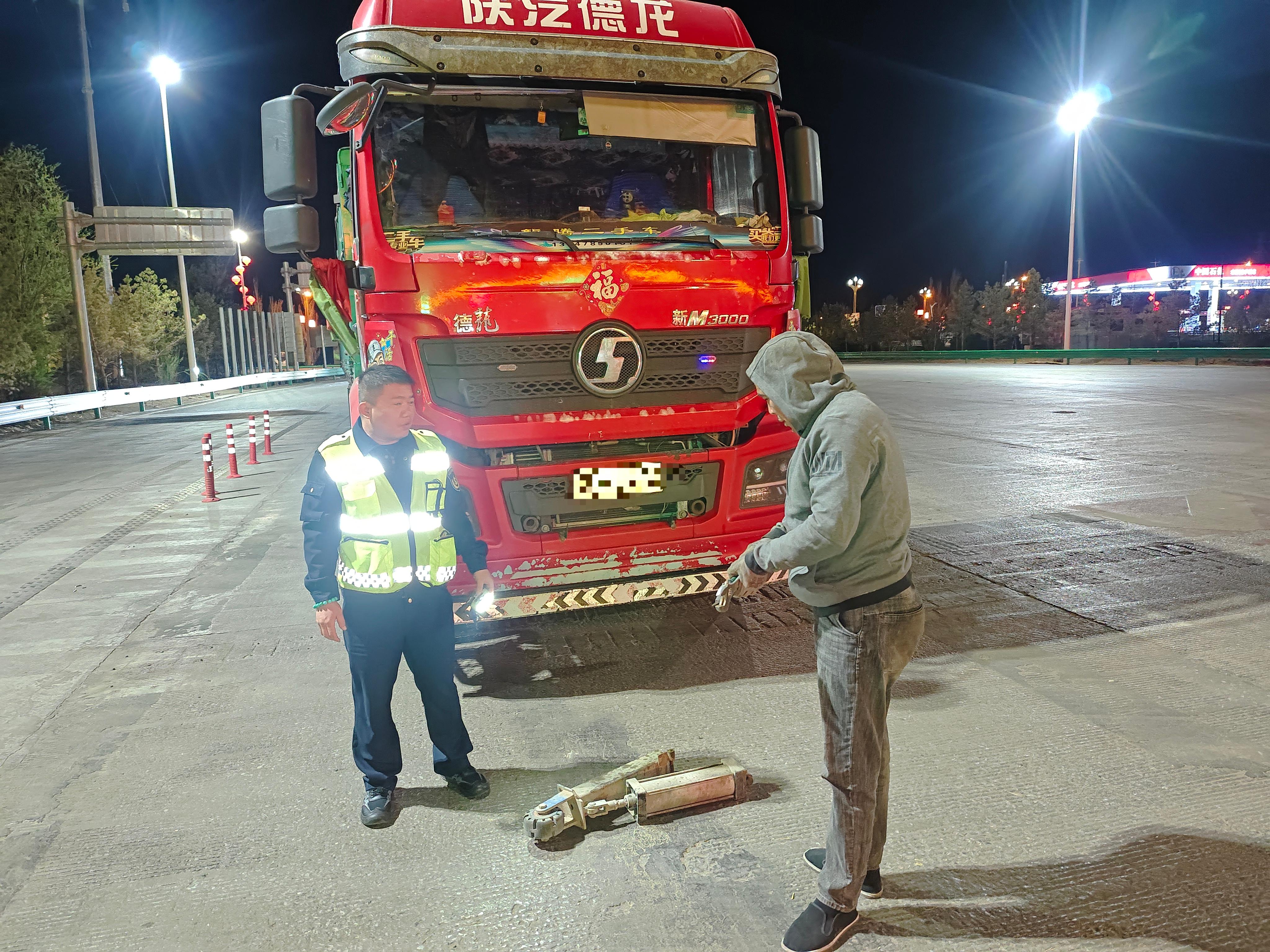 4月27日晚9點30分,一輛六軸貨車緩緩駛入磴口高速公路收費所入口車道,異常緩慢的車速引起了當班收費員白亮的警覺。憑借多年的工作經(jīng)驗,他察覺到車輛存在問題,便立即聯(lián)系當班班長彭佳東一同上前了解情況。