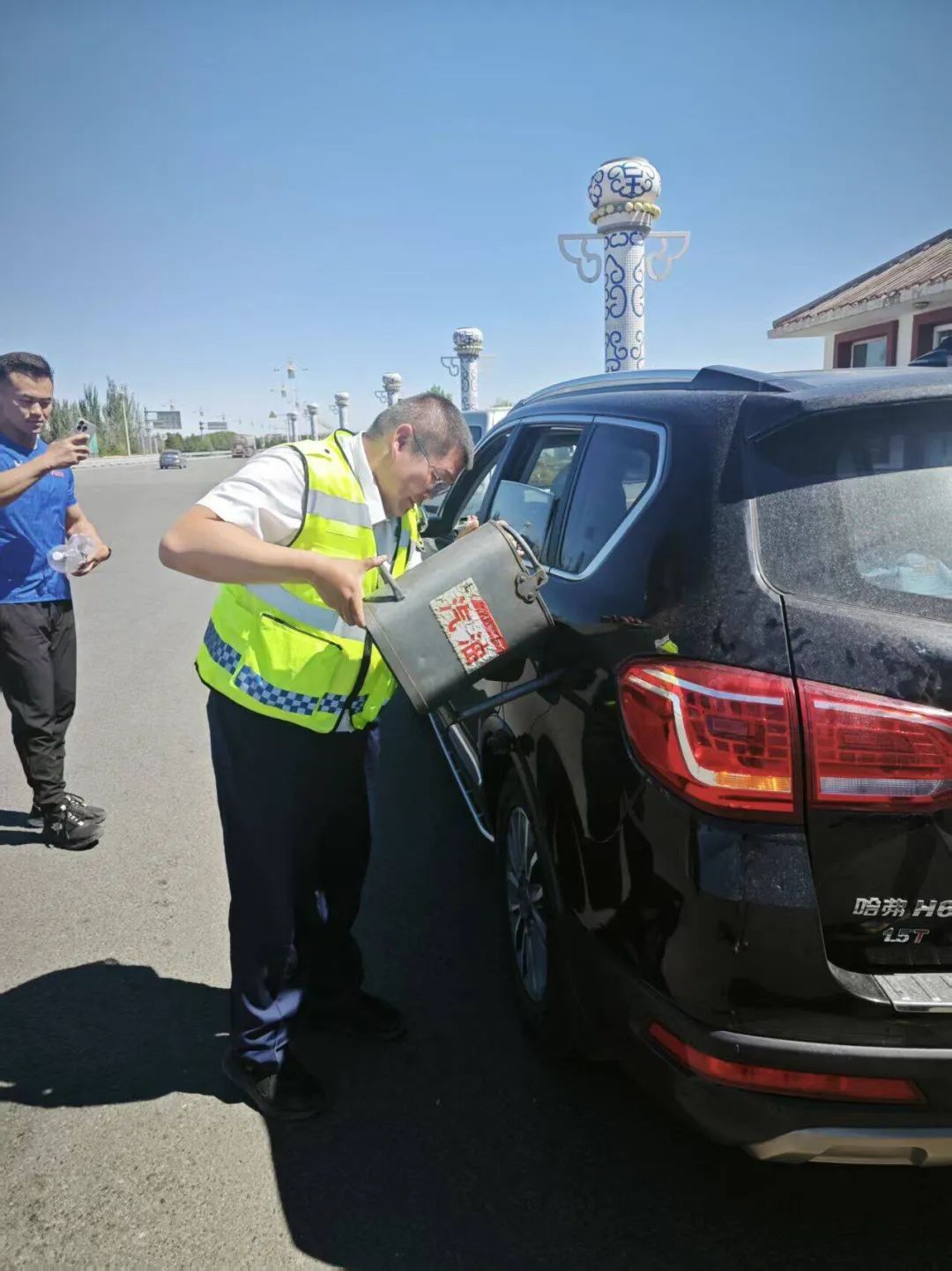 面對焦急萬分的司機,收費班長一邊安撫其情緒,一邊將車輛推至安全區(qū)域,事后迅速聯(lián)系附近加油站咨詢打油事項。收費班長考慮到司機對周邊環(huán)境不熟悉,主動聯(lián)系所內(nèi)車輛載上司機前往加油站購買燃油,并且還貼心地為其規(guī)劃了往返路線。僅用十分鐘左右的時間,便帶著燃油返回,收費班長立即幫助駕駛員完成加油。車輛重新啟動后,駕駛員緊緊握住工作人員的手,激動地說:“太感謝你們了!要不是你們幫忙,我真不知道該怎么辦,你們的服務(wù)太貼心了!”