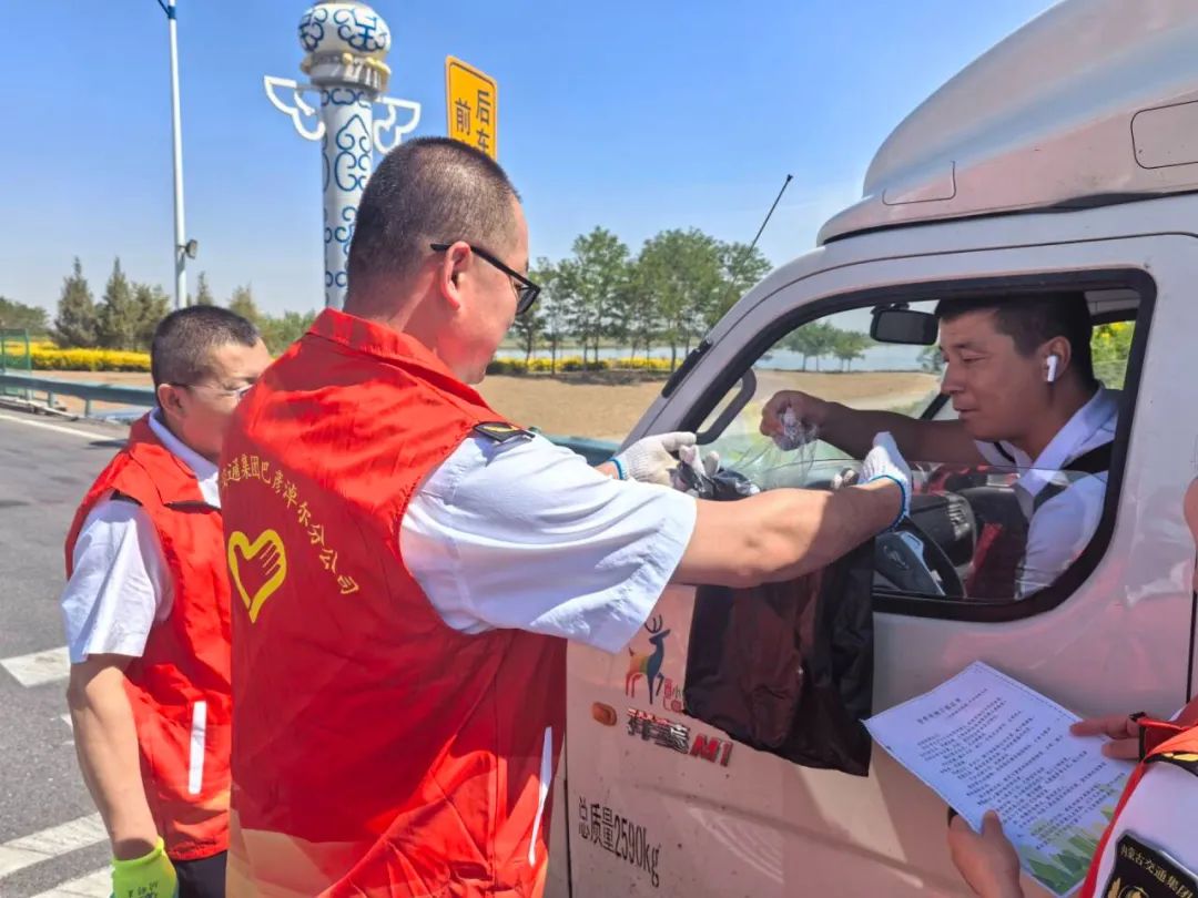 二是以世界環(huán)境日為契機,積極開展交通安全知識宣傳,為過往司乘發(fā)放世界環(huán)境日倡議書,提醒過往司乘文明行車、拒絕車窗垃圾,并將司乘車內(nèi)垃圾進行收集處理,進一步提高過往司乘交通安全意識。