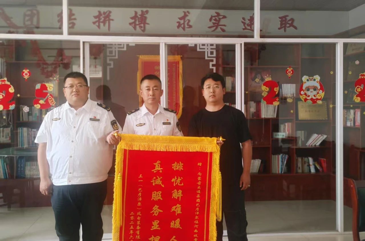 一面錦旗,一份認(rèn)可。6月17日,三一風(fēng)電裝備有限公司工作人員拿著一面繡有“排憂解難暖人心 真誠服務(wù)顯擔(dān)當(dāng)”的錦旗,贈(zèng)送給臨河西高速公路收費(fèi)所。這份誠摯的謝意是高速公路收費(fèi)所和企業(yè)攜手同行、共促發(fā)展的暖心服務(wù)歷程。
