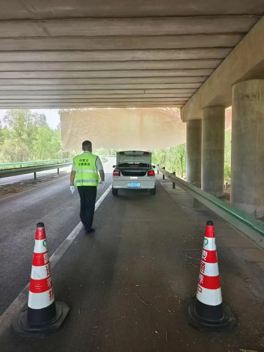 正在值班的收費(fèi)班長(zhǎng)楊普盛見狀,立刻通過對(duì)講機(jī)通知監(jiān)控人員和值班所長(zhǎng),集合班組人員,提醒后續(xù)車輛減速慢行。隨后迅速拿起反光錐筒,快步跑到車道前方,將錐筒有序擺放,警示后方車輛避讓,避免發(fā)生事故。