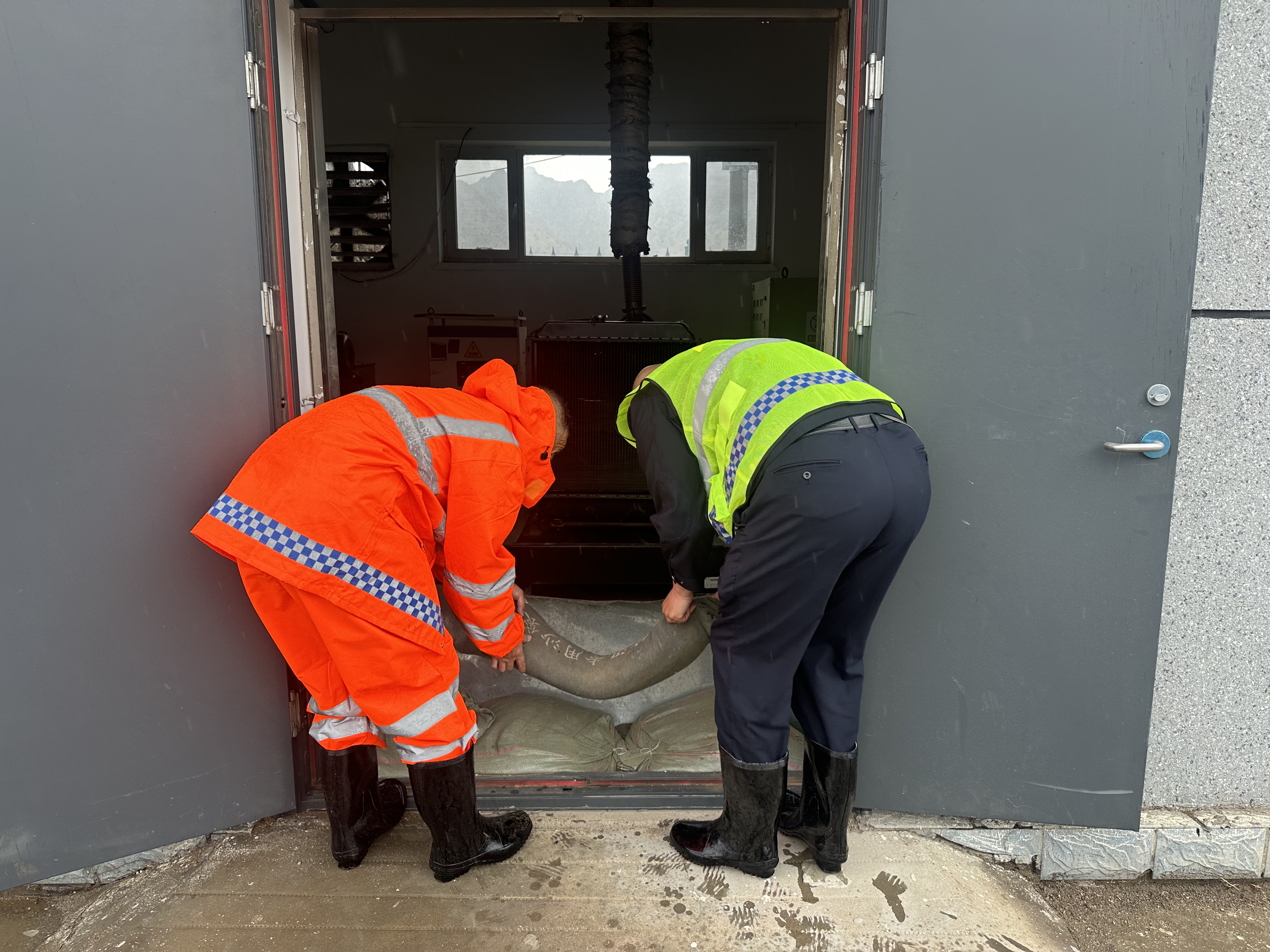 除了對車道邊坡的緊急處置,工作人員還重點對發(fā)電機房、配電室、排水系統(tǒng)等重點區(qū)域進行了全面細致的排查。清理排水口的雜物,確保排水暢通;檢查電氣設(shè)備,防止因雨水浸泡引發(fā)漏電事故,每一個環(huán)節(jié)都不放過,每一處隱患都認真記錄并及時整改。