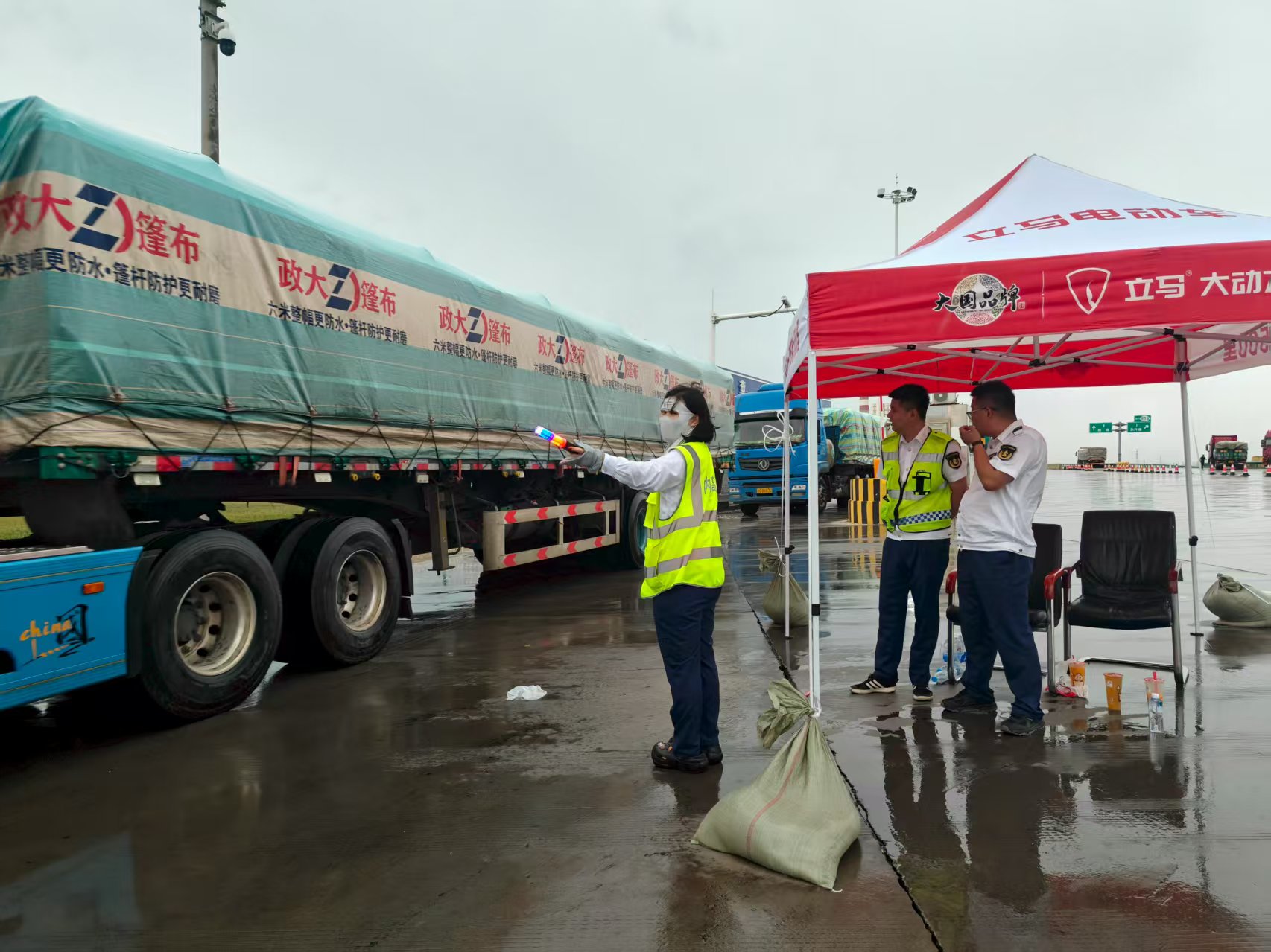 險情發(fā)生后,收費(fèi)所立即啟動防擁堵應(yīng)急預(yù)案,第一時間向分公司上報(bào)情況,并迅速加開出入口應(yīng)急車道,確保收費(fèi)廣場全程無擁堵、無事故。同時,安排工作人員前往匝道入口進(jìn)行車輛分流,耐心向滯留司乘做好解釋工作,緩解其急躁情緒,并針對性勸導(dǎo)前往新疆的貨車提前繞行,避免因長時間等待影響行程。