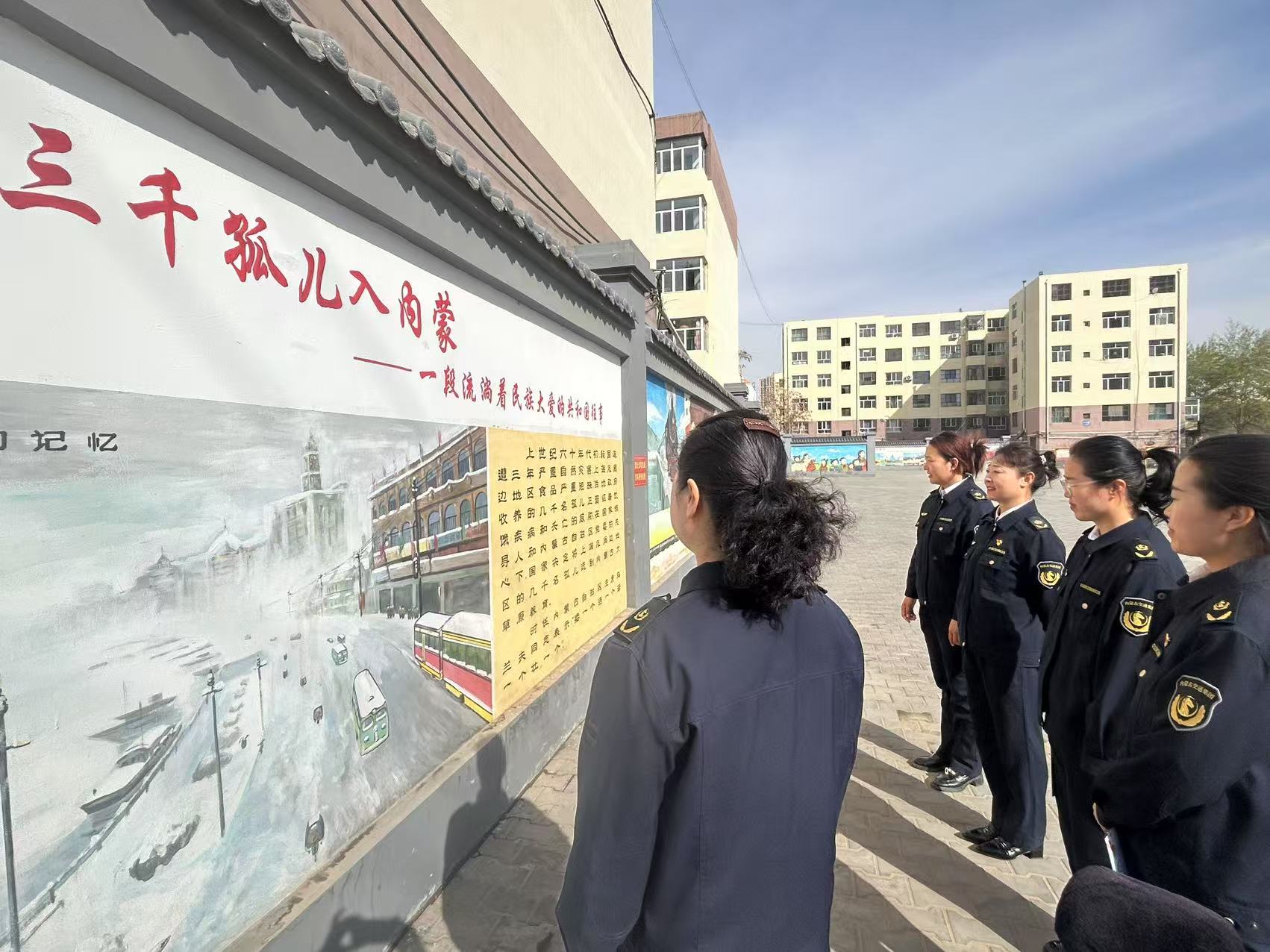 民族團(tuán)結(jié)是各族人民的生命線,是我們各項(xiàng)工作的保障和基礎(chǔ)。民族團(tuán)結(jié)教育墻畫(huà)以一張張色彩生動(dòng)的油畫(huà)、一段段文字記載了“三千孤兒入內(nèi)蒙”這段鮮為人知卻充滿溫情與奉獻(xiàn)的佳話。一列列火車(chē)滿載著南方孤兒駛?cè)雰?nèi)蒙古的車(chē)站,一輛輛勒勒車(chē)滿載著牧民和孤兒抵達(dá)遼闊的草原。在牧民的精心照料下,這些孤兒逐漸適應(yīng)了草原上的生活,他們學(xué)會(huì)了騎馬、放羊等技能,也感受到了蒙古族人民的熱情和淳樸。隨著時(shí)間的推移,這些孩子不僅融入了新的家庭,更成為了草原上的一份子?!叭Ч聝喝雰?nèi)蒙”的故事展現(xiàn)了中華民族在危難時(shí)刻心手相連、共克時(shí)艱的團(tuán)結(jié)與互助精神。
