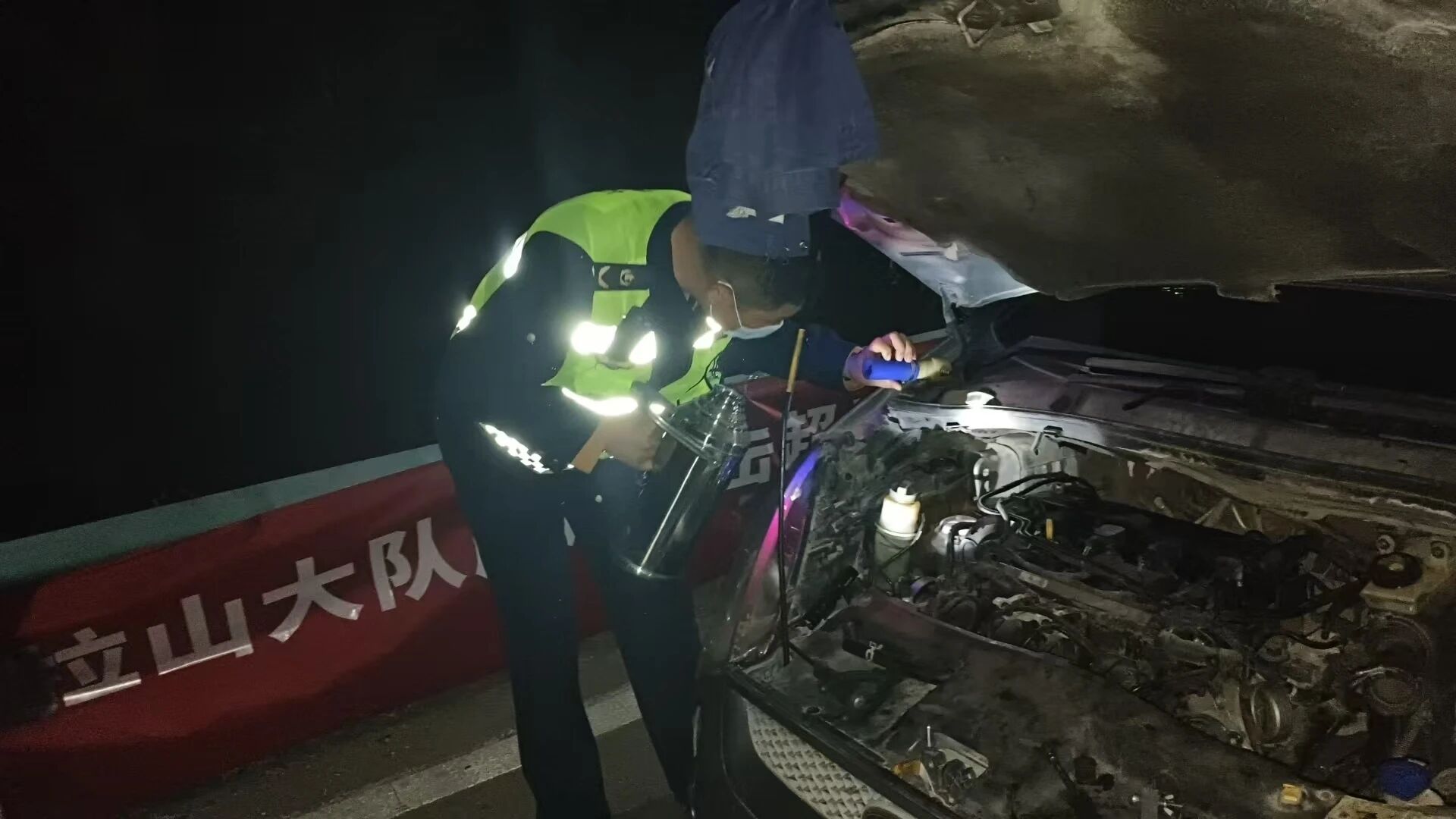 19時(shí)35分,維修師傅抵達(dá)現(xiàn)場。一場緊張有序的聯(lián)合救援隨即展開。工作人員手持強(qiáng)光手電,始終保持穩(wěn)定姿勢為維修作業(yè)照明,同時(shí)在師傅的指導(dǎo)下協(xié)助拆卸損壞部件;另一工作人員則主動(dòng)承擔(dān)起后勤保障工作,往返于收費(fèi)所與現(xiàn)場之間,及時(shí)為維修提供所需清水;維修師傅則專注于核心操作,有條不紊地更換破裂水管。經(jīng)過 40 分鐘的通力協(xié)作,車輛故障成功排除。