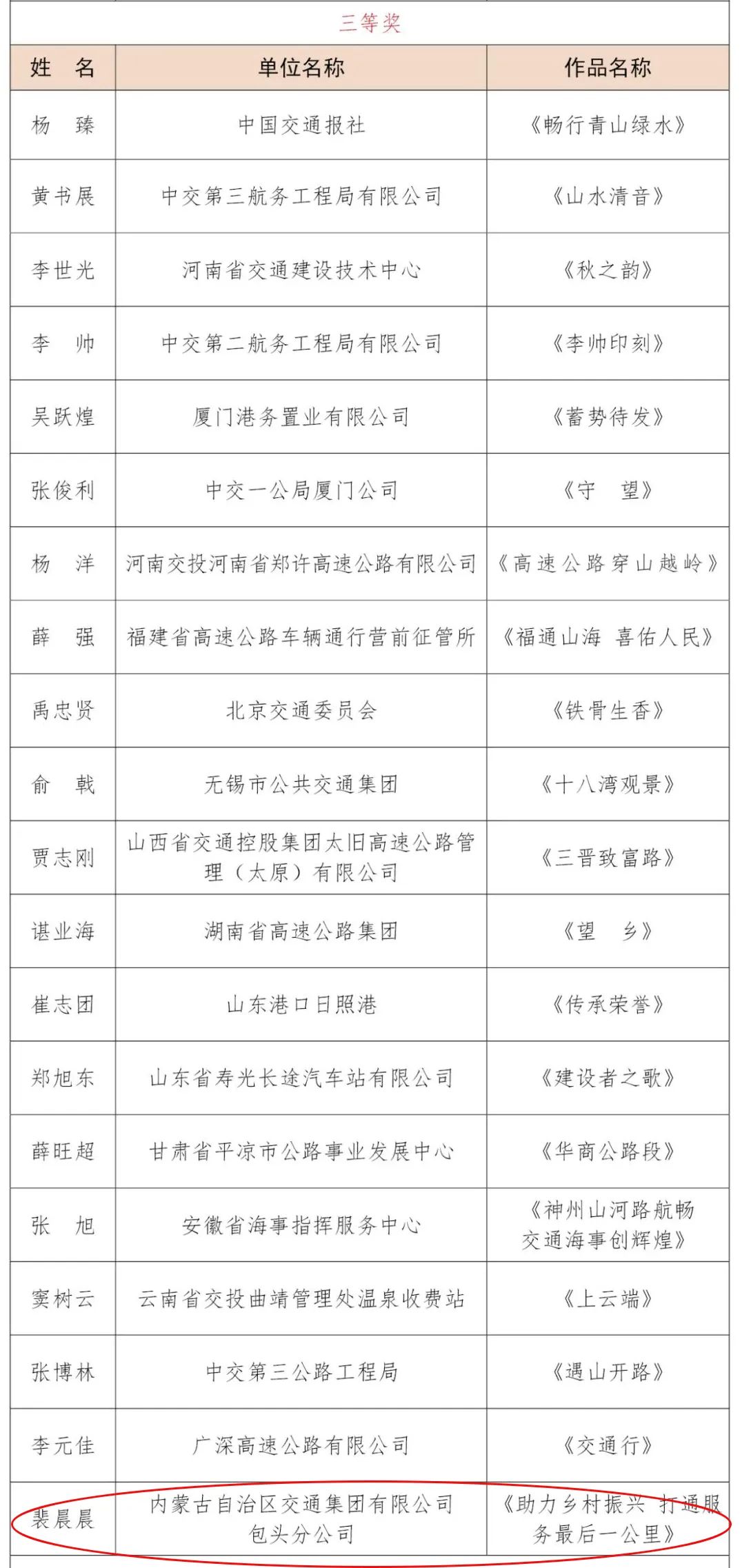 2023年12月1日,由中國交通書畫攝影協(xié)會和中國海員建設工會全國委員會共同主辦的“奮進新征程 建功新偉業(yè)”全國交通運輸職工書畫攝影展落下帷幕,本次書畫攝影展面向全國交通運輸行業(yè)各領域,共計收到書法、美術和攝影作品共計8696幅,經專家初評和終評,內蒙古交通集團包頭分公司職工裴晨晨美術類作品《助力鄉(xiāng)村振興,打通服務“最后一公里”》脫穎而出,獲得三等獎的好成績。