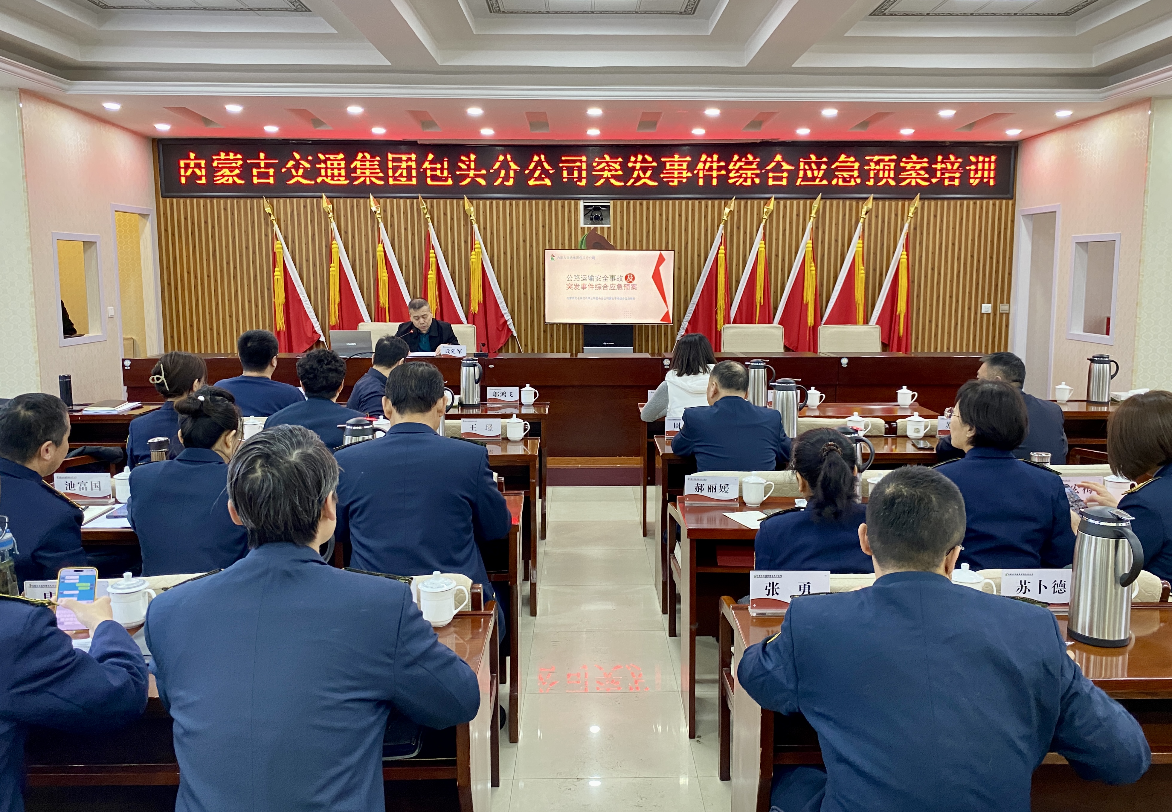 為扎實(shí)推進(jìn)分公司突發(fā)事件應(yīng)急預(yù)案修編宣貫工作,健全完善應(yīng)急預(yù)案體系建設(shè),提高應(yīng)對(duì)各類(lèi)突發(fā)事件的能力和水平,1月23日,分公司舉辦《內(nèi)蒙古交通集團(tuán)包頭分公司突發(fā)事件綜合應(yīng)急預(yù)案》培訓(xùn)活動(dòng)。分公司領(lǐng)導(dǎo)班子、機(jī)關(guān)各部室和基層各單位副科級(jí)以上干部,共計(jì)50余人參加。
