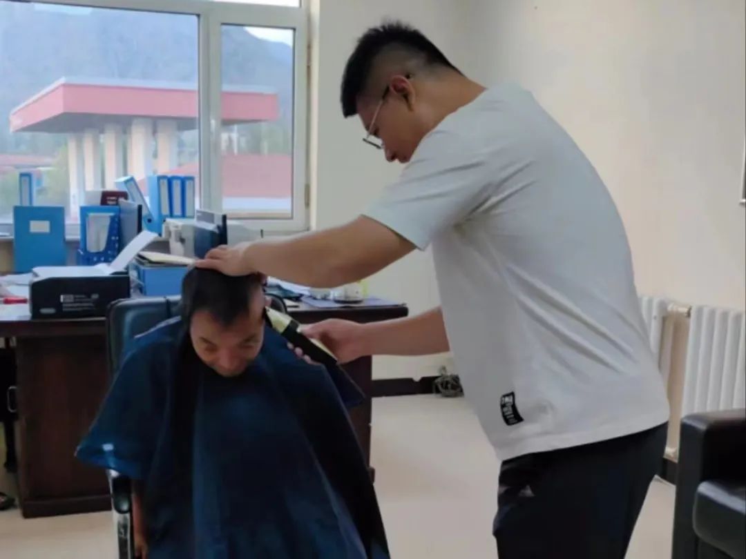 見(jiàn)此情況,服務(wù)區(qū)工作人員變身“Tony”,精心準(zhǔn)備了理發(fā)工具。隨著理發(fā)器的嗡嗡作響聲,“Tony”手法嫻熟、干凈利落,不一會(huì)兒就為大家理好了發(fā)型,瞬間提升了大家的精氣神,大家的臉上也露出了滿(mǎn)意的笑容。