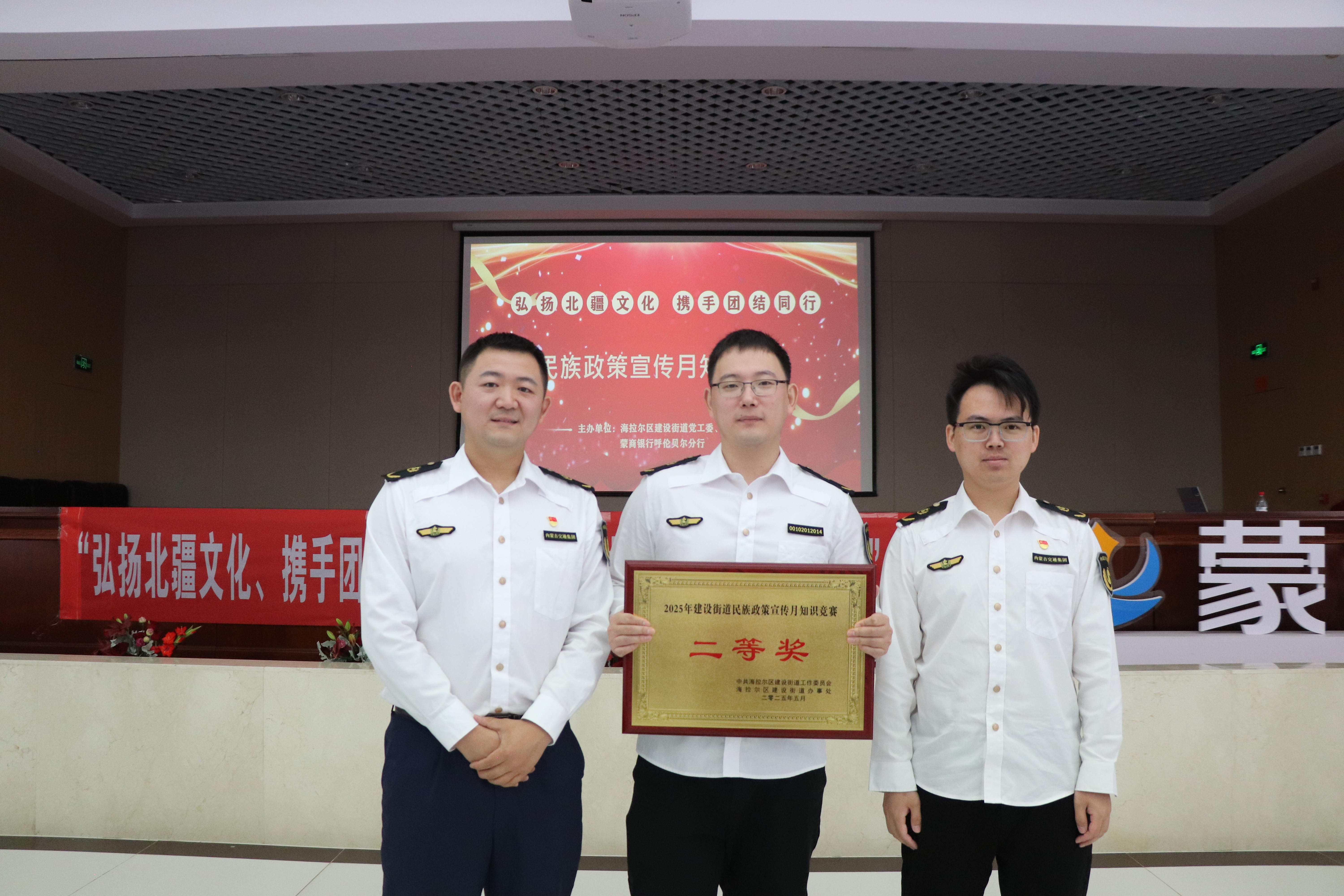 此次知識競賽圍繞民族政策法規(guī)、民族團(tuán)結(jié)進(jìn)步創(chuàng)建知識、民族歷史知識等內(nèi)容設(shè)置題目,分為小組必答題、小組搶答題、風(fēng)險題三個環(huán)節(jié)。分公司第一黨支部參賽選手沉著應(yīng)戰(zhàn)、對答如流,充分展現(xiàn)了豐富的知識儲備和昂揚(yáng)向上的精神風(fēng)貌。經(jīng)過1個多小時的激烈角逐,最終海東社區(qū)獲得第一名;內(nèi)蒙古交通集團(tuán)呼倫貝爾分公司獲得第二名;海通路派出所獲得第三名。