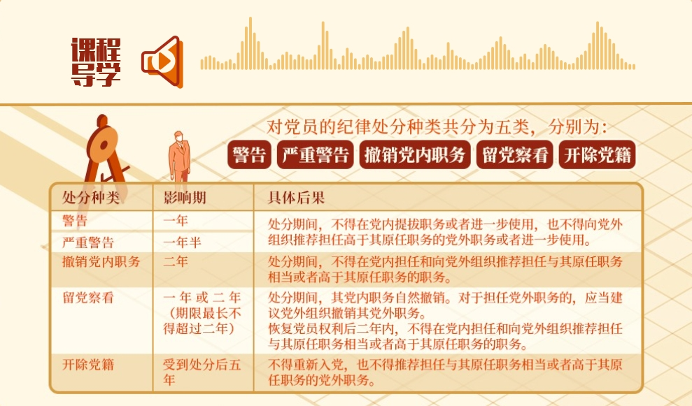 《中國共產(chǎn)黨紀律處分條例》規(guī)定,對黨員的紀律處分種類共分為五類,分別為警告、嚴重警告、撤銷黨內(nèi)職務、留黨察看和開除黨籍。