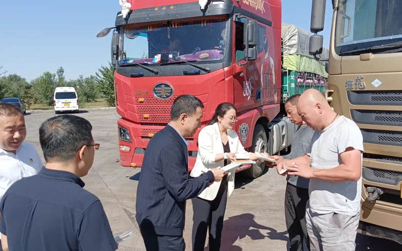 “師傅,辛苦了,開車容易疲乏,一定要注意行車安全,累了就到我們的司機(jī)之家休息,這里可以住宿、洗衣,設(shè)施服務(wù)都是免費(fèi)的……”8月30日上午,內(nèi)蒙古自治區(qū)總工會(huì)經(jīng)濟(jì)部黨支部、內(nèi)蒙古自治區(qū)建筑建材交通機(jī)冶工會(huì)黨支部、內(nèi)蒙古交通集團(tuán)工會(huì)黨支部在呼和浩特西服務(wù)區(qū)司機(jī)之家開展“關(guān)愛貨車司機(jī),關(guān)注運(yùn)輸安全”主題黨日活動(dòng)。內(nèi)蒙古自治區(qū)總工會(huì)經(jīng)濟(jì)部副部長王曉燕,經(jīng)濟(jì)部副部長閆宇文,經(jīng)濟(jì)部二級(jí)調(diào)研員劉志忠,內(nèi)蒙古自治區(qū)建筑建材交通機(jī)冶工會(huì)副主席楊志鴻,內(nèi)蒙古交通集團(tuán)工會(huì)委員會(huì)相關(guān)負(fù)責(zé)同志出席活動(dòng)。