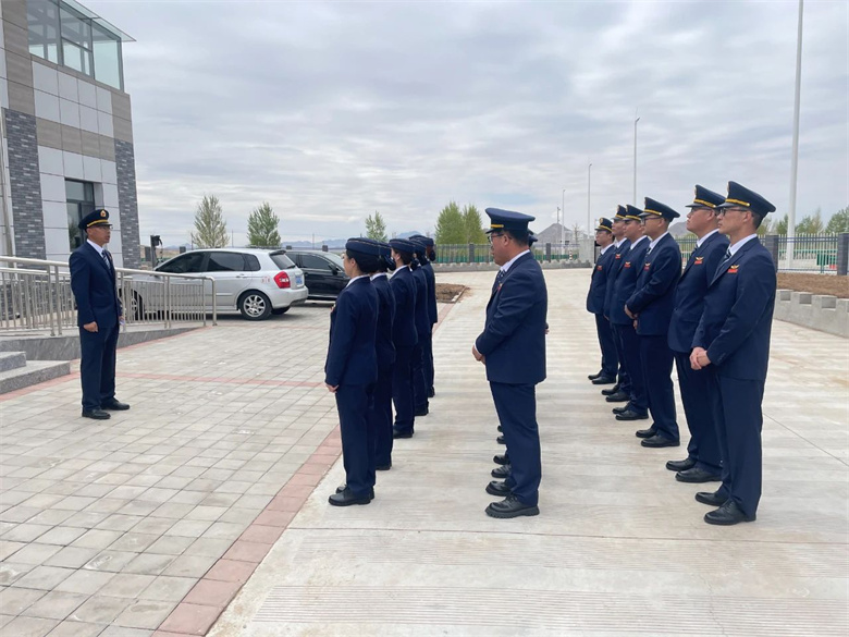 大板東收費(fèi)黨支部所利用站前屏幕滾動(dòng)播放國(guó)防教育標(biāo)語(yǔ)。全體職工在統(tǒng)一指揮下,開展軍事列隊(duì)訓(xùn)練,參訓(xùn)人員身著統(tǒng)一制服,精神煥發(fā)地排列成整齊的方陣,完成了全部訓(xùn)練內(nèi)容。