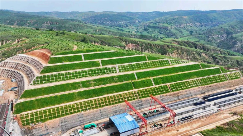 成果上,錨桿、鐵絲網(wǎng)與植物根系形成立體防護(hù)體系,顯著提升邊坡穩(wěn)定性與抗災(zāi)能力。沙打旺、苜蓿等植物使坡面煥發(fā)生機(jī),轉(zhuǎn)化為錯(cuò)落有致的生態(tài)景觀。準(zhǔn)高投公司秉持“全壽命周期”理念,在鄂爾多斯高原書寫公路建設(shè)與生態(tài)保護(hù)的和諧答卷,讓公路成為串聯(lián)發(fā)展與自然的綠色紐帶,持續(xù)釋放“紅色堡壘”的綠色動(dòng)能。